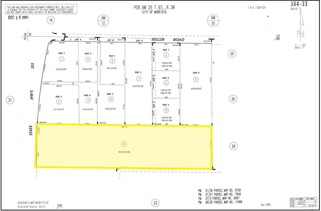 We are pleased to present the exclusive offering of this prime, 18.48-acre development opportunity in the City of Murrieta. The property is strategically located between the Loma Linda and Kaiser Permanente Medical Centers and has roughly 440 feet of frontage on Antelope Road which runs parallel to the I-215 freeway. Additionally, the property is about 850 feet south of Keller Road where a future offramp is planned. The site itself is primarily flat with some rolling areas and has existing improvements including a single-family home among other structures. Water and sewer service in the area are provided the Eastern Municipal Water District (see OM for maps). Please reach out with any interest or questions regarding this opportunity.