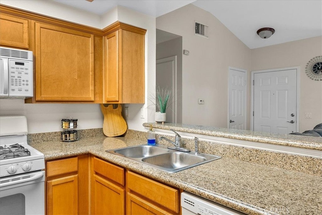 Welcome to Mission Villas Community. This community is gated and in the center of Mission Grove. Your private end unit with no one above. Oversize primary 1 bedroom 1 bath for a first time buyers or someone who may want to downsize. This condo is cute and cozy with two patios one leading you outside of the Primary Bedroom. Another patio out of the dinning area. Ammenties include a pool, spa and bar-b-que, picnic area, gym. There is a Laundry facialty within the Community. Walking distance from grocery stores and restaurants. There is a galaxy movie theater and fast foods. Plenty of guest parking. Close to Freeways.