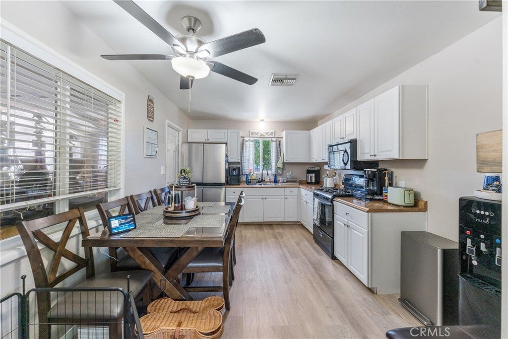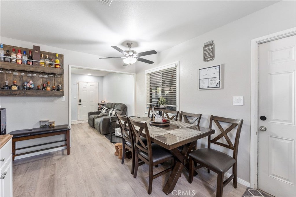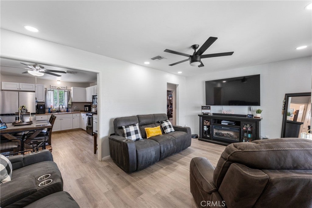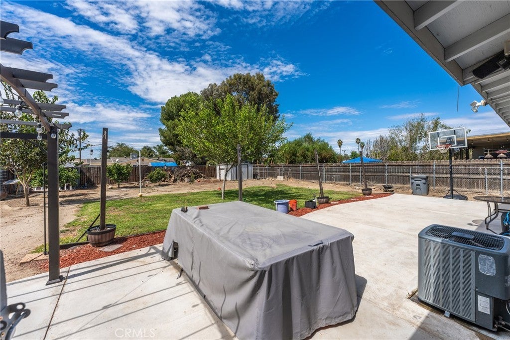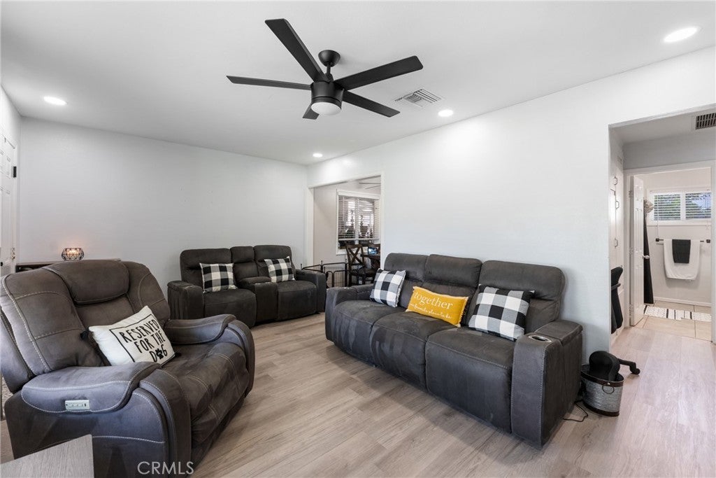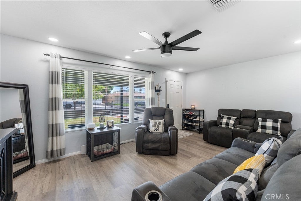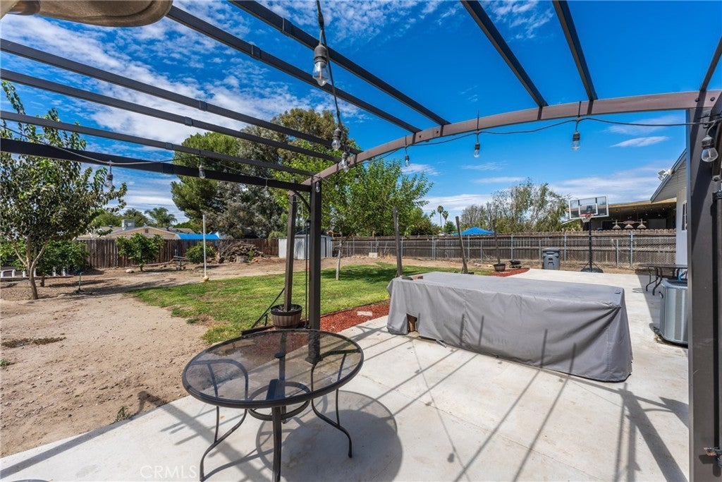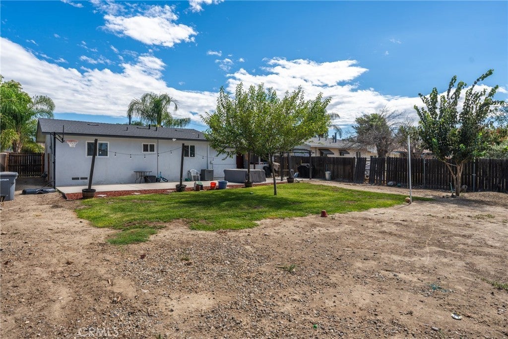 **Subject to Cancellation, Buyer did not perform** Turnkey, stylish, and full of potential—this 2-bedroom, 1-bathroom Hemet home with 1,072 sq. ft. of living space is the perfect starter or downsizing home. The curb appeal immediately stands out with its gated driveway, modern fencing, lush green lawn, a newer roof (2 yrs old), and a cozy front porch that invites you inside. Step into the bright living room where updated flooring, recessed lighting, and a modern ceiling fan create a warm and welcoming atmosphere. The open layout flows effortlessly into the dining area and kitchen, which features white cabinetry, plenty of storage, and stainless steel/black appliances. Both bedrooms offer comfort with natural light, ceiling fans, and ample closet space. The bathroom has been tastefully upgraded with clean finishes. Thoughtful touches throughout the home—fresh paint, central A/C, and updated design elements—make it completely move-in ready. The backyard is a true highlight. With its large lot, you’ll have space for barbecues, gatherings, or simply relaxing under the pergola-style patio with string lights. There’s a grassy play area, fruit trees, and plenty of open yard for future projects—whether it’s adding a garden, workshop, or more. For added convenience, the back & front yards include smart irrigation. Located in a convenient neighborhood close to schools, shopping, dining, and commuter routes, this home delivers both comfort and potential at a fantastic value. Whether you’re just starting out or looking to downsize, this Hemet gem is ready to welcome you home.