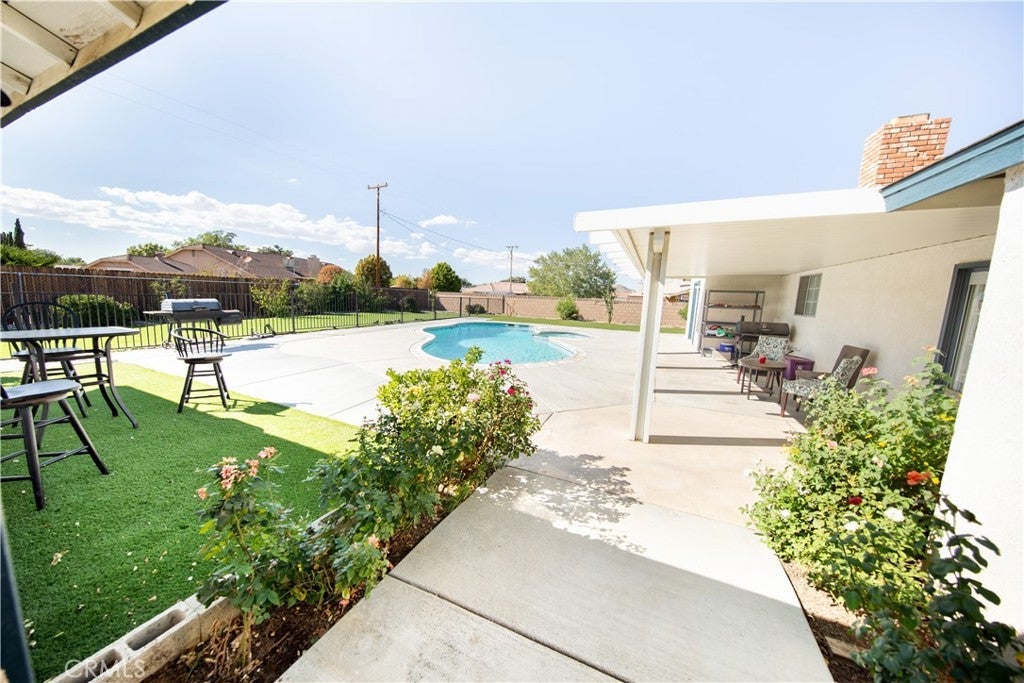 THIS IS THE ONE!!!! Welcome to 14024 Delaware Road, a spacious SINGLE-STORY DOUBLE MASTER/PRIMARY SUITE Ranch-style home offering 4 bedrooms and 3 FULL bathrooms, built in 1985 on a large, fully usable and finished lot. This property combines comfort, functionality, and outdoor living at its best. The home features TWO LARGE Primary/Master Suites (***DOUBLE MASTER***) on opposite sides of the home, each with ITS OWN PRIVATE BATHROOM and its own private exterior access with a view of the heated pool and spa. Both include separate showers and soaking tubs, while one suite is LARGE enough to serve as its own potential ADU or easily add an additional room or two (see aerial view of the size of the room), complete with a fireplace, spa-like bath, and private backyard entrance. The open layout offers a formal dining room, living room, and family room, plus a breakfast nook overlooking the pool and spa area. The upgraded kitchen boasts stylish modern countertops, a bar seating area, and an easy flow into the main two living spaces. Enjoy a resort-style backyard with a refreshing in-ground **HEATED** pool and spa, covered patio, designated dog run, and nicely cross-fenced yard areas with fruit trees for added functionality and privacy. The oversized driveway, gated RV access, and street parking provide ample space for vehicles and guests. Additional highlights include solar to help offset utility costs (a HUGE bonus with the pool) and a LARGE laundry room with plenty of storage. PRIME APPLE VALLEY LOCATION: Nestled between Highway 18 and Bear Valley Road, this sought-after neighborhood provides quick access to shopping, dining, schools, parks, and medical services. Large lots, quiet surroundings, and pride of ownership make this area one of Apple Valley’s most desirable. BONUS: LOW PROPERTY TAX RATE and NO HOA. Eligible for first-time buyer programs, this home offers flexibility and value.