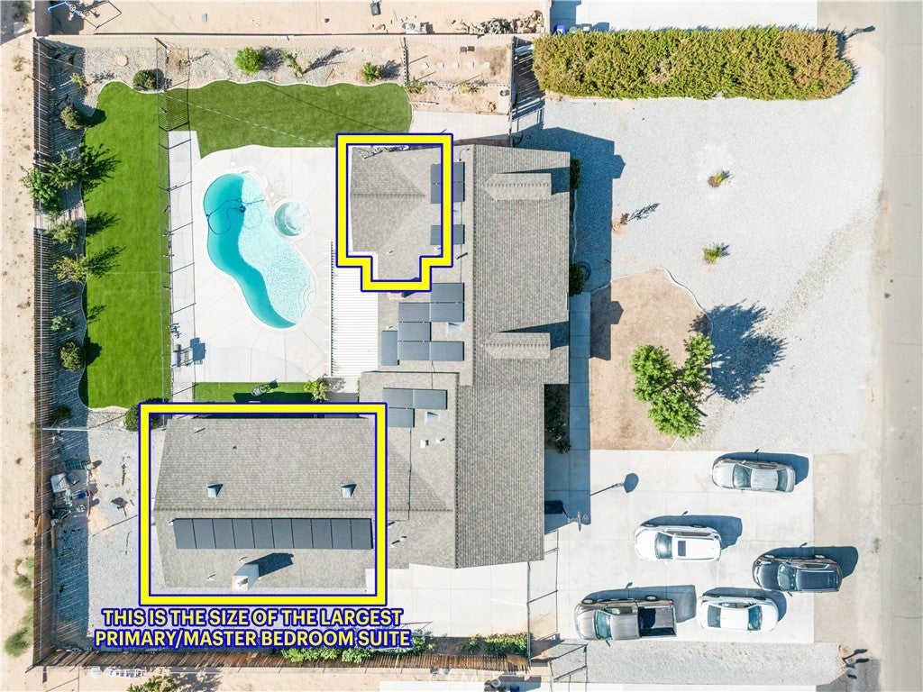 THIS IS THE ONE!!!! Welcome to 14024 Delaware Road, a spacious SINGLE-STORY Ranch-style home offering 4 bedrooms and 3 FULL bathrooms, built in 1985 on a large, fully usable and finished lot. This property combines comfort, functionality, and outdoor living at its best. The home features TWO LARGE Primary/Master Suites (***DOUBLE MASTER***) on opposite sides of the home, each with ITS OWN PRIVATE BATHROOM and their own private exterior access with a view of the heated pool and spa. Both include separate showers and soaking tubs, while one suite is LARGE enough to serve as its own potential ADU or easily add an additional room or two (see aerial view of the size of the room), complete with a fireplace, spa-like bath, and private backyard entrance. The open layout offers a formal dining room, living room, and family room, plus a breakfast nook overlooking the pool and spa area. The upgraded kitchen boasts stylish modern countertops, a bar seating area, and an easy flow into the main two living spaces. Enjoy a resort-style backyard with a refreshing in-ground **HEATED** pool and spa, covered patio, designated dog run, and nicely cross-fenced yard areas with fruit trees for added functionality and privacy. The oversized driveway, gated RV access, and street parking provide ample space for vehicles and guests. Additional highlights include solar to help offset utility costs (a HUGE bonus with the pool) and a LARGE laundry room with plenty of storage. PRIME APPLE VALLEY LOCATION: Nestled between Highway 18 and Bear Valley Road, this sought-after neighborhood provides quick access to shopping, dining, schools, parks, and medical services. Large lots, quiet surroundings, and pride of ownership make this area one of Apple Valley’s most desirable. BONUS: LOW PROPERTY TAX RATE and NO HOA. Eligible for first-time buyer programs, this home offers flexibility and value.