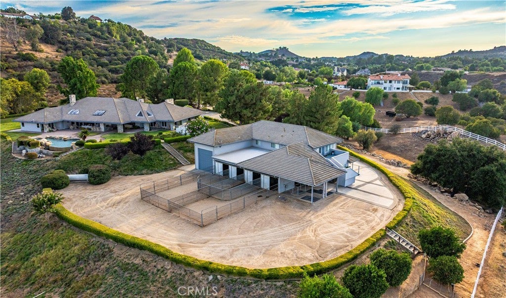 Welcome to La Cresta where this amenity-rich equestrian estate is available for the first time ever. The main house spans roughly 5,000 square feet within a sprawling floor plan designed with soaring ceilings and high end finishes at every turn. Enjoy open concept living with panoramic seamless glass windows that bring incredible views into nearly every room of the house. The massive gourmet kitchen offers a breakfast bar, center island with a prep sink and ice maker, double ovens, and a large walk in pantry with another prep sink. There is plenty of room for family and guests with separate family and living rooms, a formal dining room, and four bedrooms, five bathrooms and a library. The backyard is an entertainer's dream with an infinity edge swimming pool, jacuzzi, barbecue, sink, poolside bathroom, and again, those incredible views. While the main house offers an oversized three car garage, after a quick walk down to the barn you’ll find an additional four car garage along with a massive pull through RV garage. In the breezeway of the barn you’ll find a large tack room, feed room, wash racks and four horse stalls. The entire second level of the barn is a large two bedroom one bathroom guest house that also offers incredible views, with a studio apartment adjacent to the garage down below. At the west end of the property the equestrian amenities continue with a large arena and two fully fenced grass turn outs. Move right in with confidence knowing that this home has everything you need to live comfortably with a garden, fruit trees, solar power, back up generator, city water connection, two wells, two water storage tanks, and hard wired security camera system. Schedule a private showing today and seize the rare opportunity to own this fine equestrian estate.