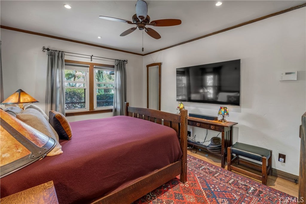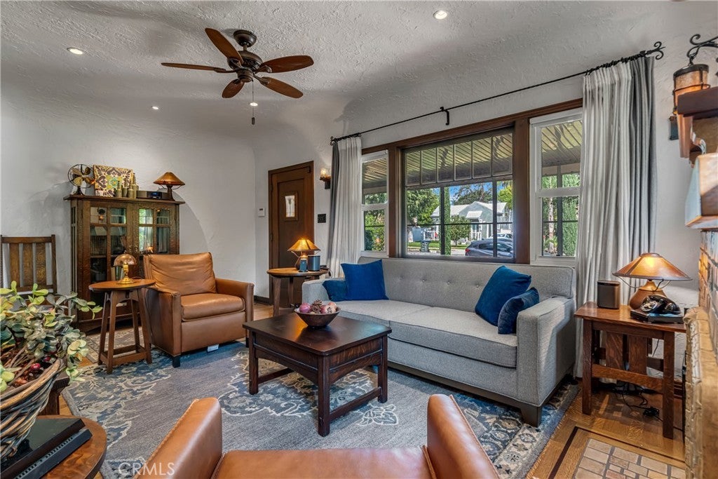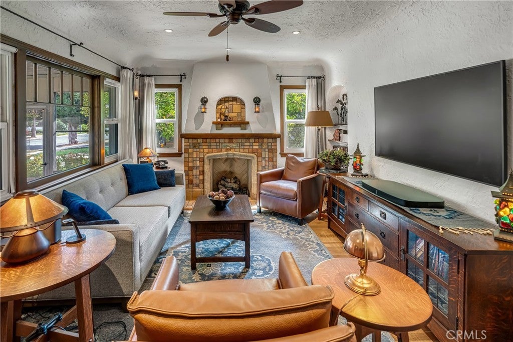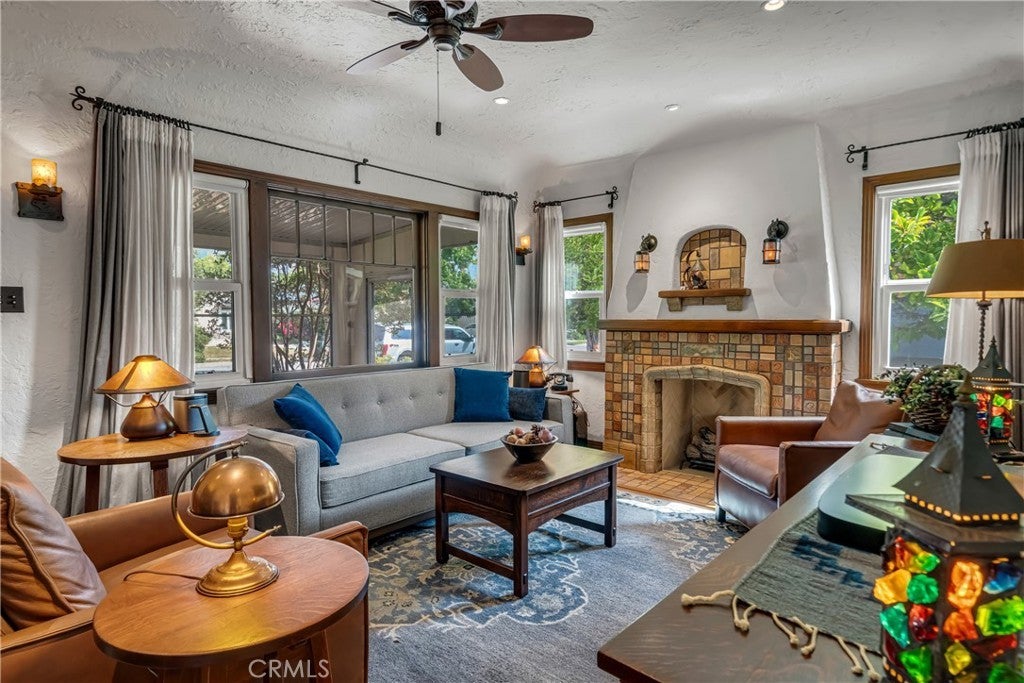 Step into timeless elegance with this beautifully preserved Spanish Revival, nestled in one of Pasadena’s most sought-after neighborhoods. Built in 1925, this residence showcases pride of ownership and a rare blend of original character with thoughtful restoration. Inside, you’ll find restored quarter-sawn oak hardwood floors that flow throughout the home, complemented by wood doors and casings carefully stripped of paint to reveal their rich natural beauty. Vintage details abound—from wrought iron sconces and classic door hardware to charming push-button light switches—all enhancing the home’s authentic character. The formal dining room is a showpiece, featuring a French door that open to a private side patio, perfect for al fresco dining. A highlight of the home is the restored fireplace adorned with Batchelder tile and intricate plasterwork, offering a warm focal point for the living space. Practical upgrades include a newly installed central HVAC system, offering modern comfort while preserving historic charm. The spacious backyard is a blank canvas, ready to be transformed into your dream garden, entertainment area, or tranquil retreat. This property is a rare opportunity to own a piece of Pasadena’s architectural history while enjoying the comfort and charm of a lovingly maintained home.