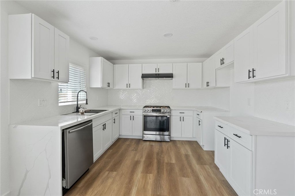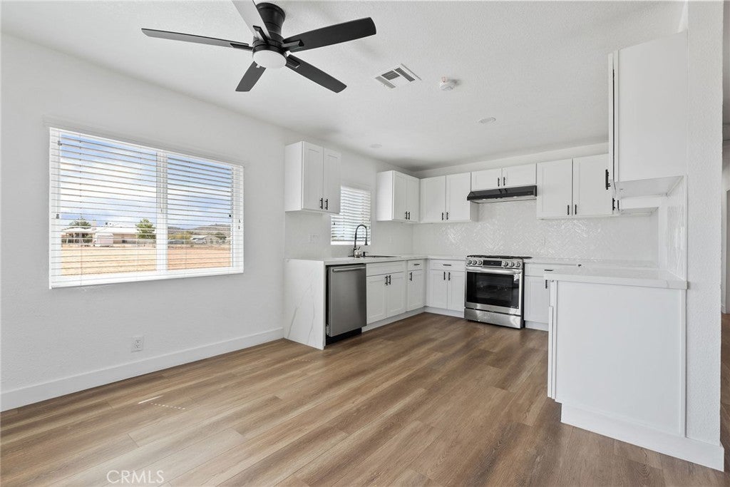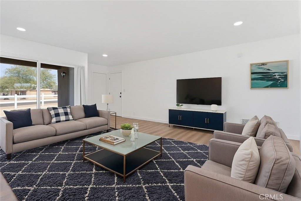 Welcome to 20631 Zuni Road in Apple Valley, a completely renovated three bedroom, two bathroom home sitting on a full acre of land. Every detail has been thoughtfully redone, making this property truly turnkey for its next owner. Inside, the open layout feels light and inviting with new dual pane windows, fresh paint, recessed lighting, and brand new vinyl plank flooring throughout. The kitchen has been completely rebuilt with quartz countertops with a waterfall end cap, a large single basin sink including workstation, custom herringbone tile backsplash, new shaker cabinets, and stainless steel appliances. Both bathrooms have been remodeled with new tubs, showers, vanities, quartz tiling, and matte black fixtures that bring a modern touch. This home is not just about the interior. Outside, you’ll find a brand new exterior paint job, drought tolerant landscaping in the front yard, and a white picket fence accented with solar powered post lights that give the property a charming curb appeal. On top of that, there is a large 15 by 20 shed that provides extra storage or space for projects. With a lot size of 43,560 square feet, there’s plenty of room for RV parking, outdoor toys, animals, or even future expansion. Located in the desirable High Desert community of Apple Valley, this property combines modern living with wide open space and stunning views. It’s move-in ready and set up to be enjoyed from day one. This is the perfect opportunity for a buyer looking for a fresh, stylish home with land and flexibility to grow.