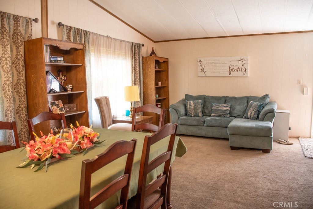 This home in the 55+ community of Banning Estates is ready for its new owner, with a PERMANENT FOUNDATION, OWNED SOLAR, and NO SPACE RENT (you own the land!). Upon entering the home, you'll be greeted with a spacious formal living/dining room with a built in hutch and wide windows for ample light. The area opens to a family room/den/tv room which adjacent to the kitchen, which features a pantry, plenty of counter and cupboard space, and room for a kitchen table. The laundry room is convenient to the living areas and features office/work/hobby space and access to the guest bathroom. The large primary bedroom with en suite features a soaking tub and stand alone shower, a vanity, and ample closet space. The 2nd bedroom rounds out the home and is perfect for guests, a care giver, or additional office/library/hobby space! Outside you'll enjoy a shady, low maintenance yard with a covered patio which is connected to the detached two car garage. Banning Estates offers the comfort of a 55+ neighborhood with a low (approx. $140/mo) HOA fee, a community pool, green spaces, and a clubhouse, as well as close proximity to local amenities, shopping, medical facilities, freeway access, and more! If you're in the market for an affordable home in a 55+ community, look no further than this well maintained home!