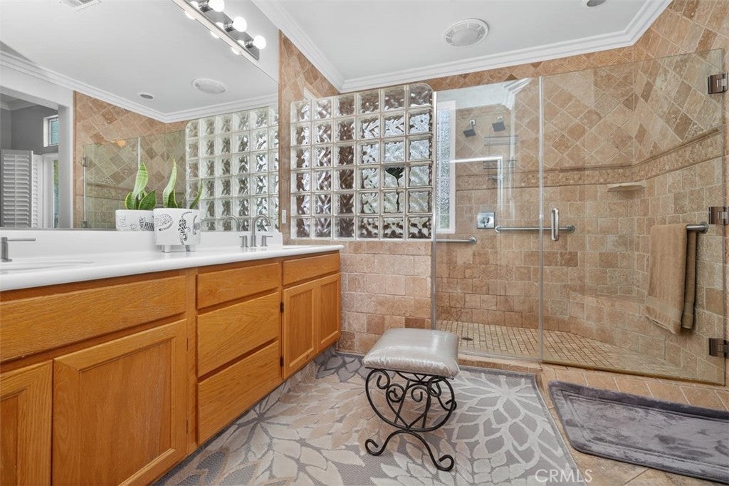 Ceiling Fan(s), Crown Molding, Separate/Formal Dining Room, Eat-in Kitchen, High Ceilings, Recessed Lighting, All Bedrooms Down, Main Level Primary, Walk-In Closet(s)