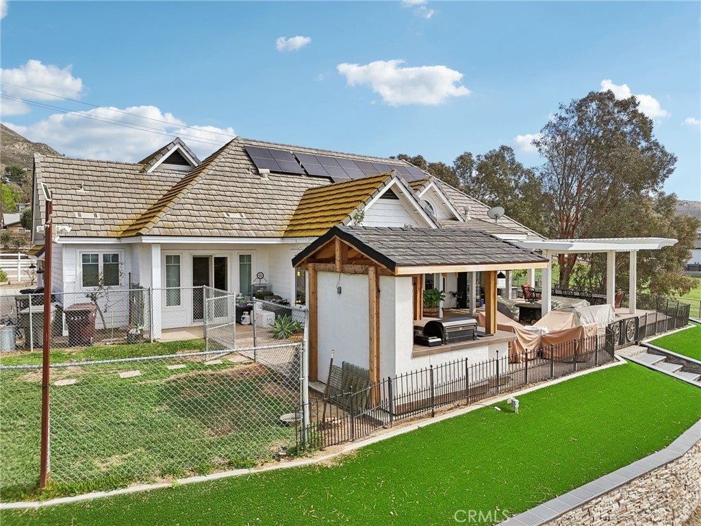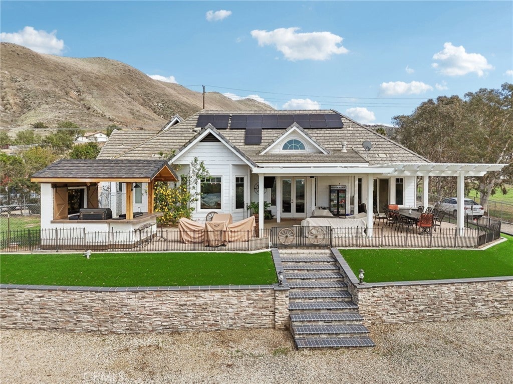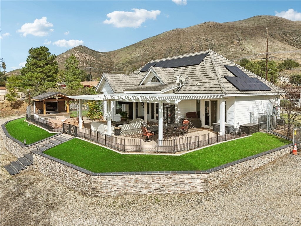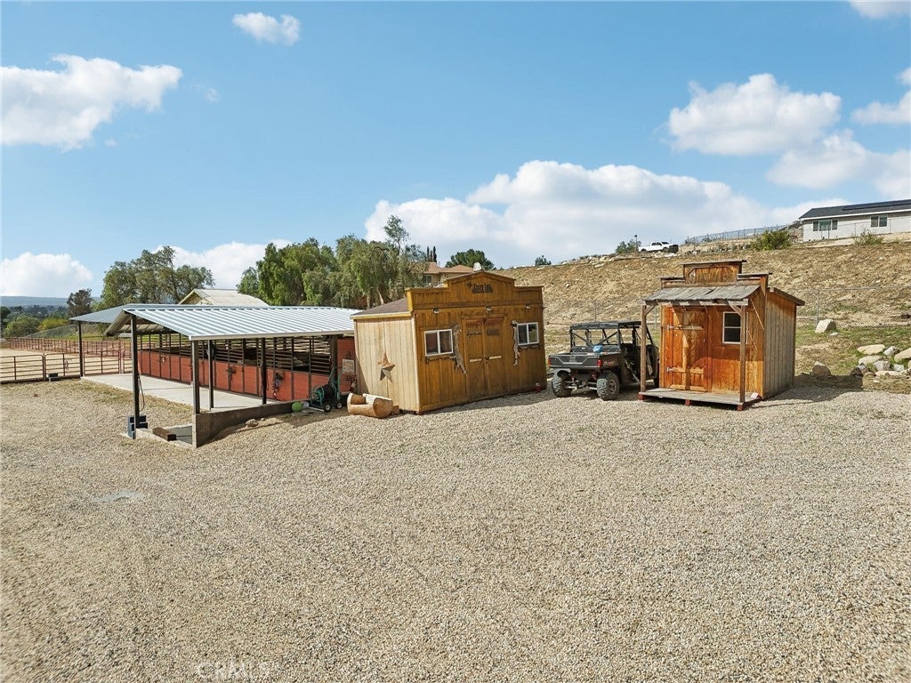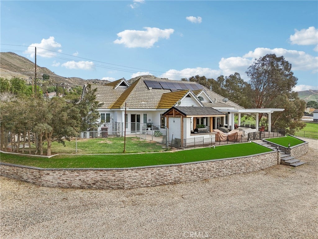 Stunning 4-Bedroom, 4-Bath Ranch on 2.35 Acres with PAID FOR SOLAR – A Dream for Equestrians and Hobbyists Alike! Welcome to this meticulously upgraded 4-bedroom, 4-bath ranch home nestled on 2.35 acres of pristine land. This property seamlessly blends luxurious living with exceptional amenities for the equestrian enthusiast & hobbyist alike. For the horse lover, this estate is a dream come true. It features a 5-stall shedrow barn with a tack room, each stall equipped with rubber mats, electrical outlets for fans, & a fly system. The 180 x 135 arena offers ample space for training and riding, with the option for future sprinklers. Additionally, a hot walker enclosed in a round pen ensures your horses get the exercise they need. For hobbyists and DIY enthusiasts, the 1,200 sq. ft. workshop is a standout feature, boasting 50-amp plugs and 220 power – perfect for any project you can imagine. Behind the workshop sits a 20 x 30 hay barn with a connex under the roof for extra storage, ensuring all your equipment and supplies are securely stowed. In the front, a spacious 30 x 80 paddock offers additional space for livestock or recreational use. Step inside and be captivated by soaring high ceilings and a cozy fireplace that create an inviting ambiance. The open-concept kitchen flows seamlessly into the family room, featuring gorgeous granite countertops and stainless steel appliances that make entertaining a breeze. This thoughtfully designed home boasts two primary suites on the main level, offering flexibility and luxury. An additional bedroom and bath are conveniently located near the kitchen. Above the garage, you’ll find a private bedroom suite with a full bath and walk-in closet, accessible thru the house or via a separate entrance for ultimate privacy – perfect for guests, in-laws, or a private office space. Step out the back door to enjoy breathtaking sunsets under the expansive Alumawood patio cover. Entertain guests at the custom outdoor entertainment center, complete with a bar and liquor dispenser – the perfect spot to unwind after a long day. The recently painted exterior, complemented by updated landscaping and curbs, enhances the property’s curb appeal, creating a welcoming first impression. This exceptional property offers the perfect blend of luxury, functionality, and outdoor living. Whether you're an equestrian enthusiast, hobbyist, or someone who simply loves spacious, comfortable living, this ranch has it all.