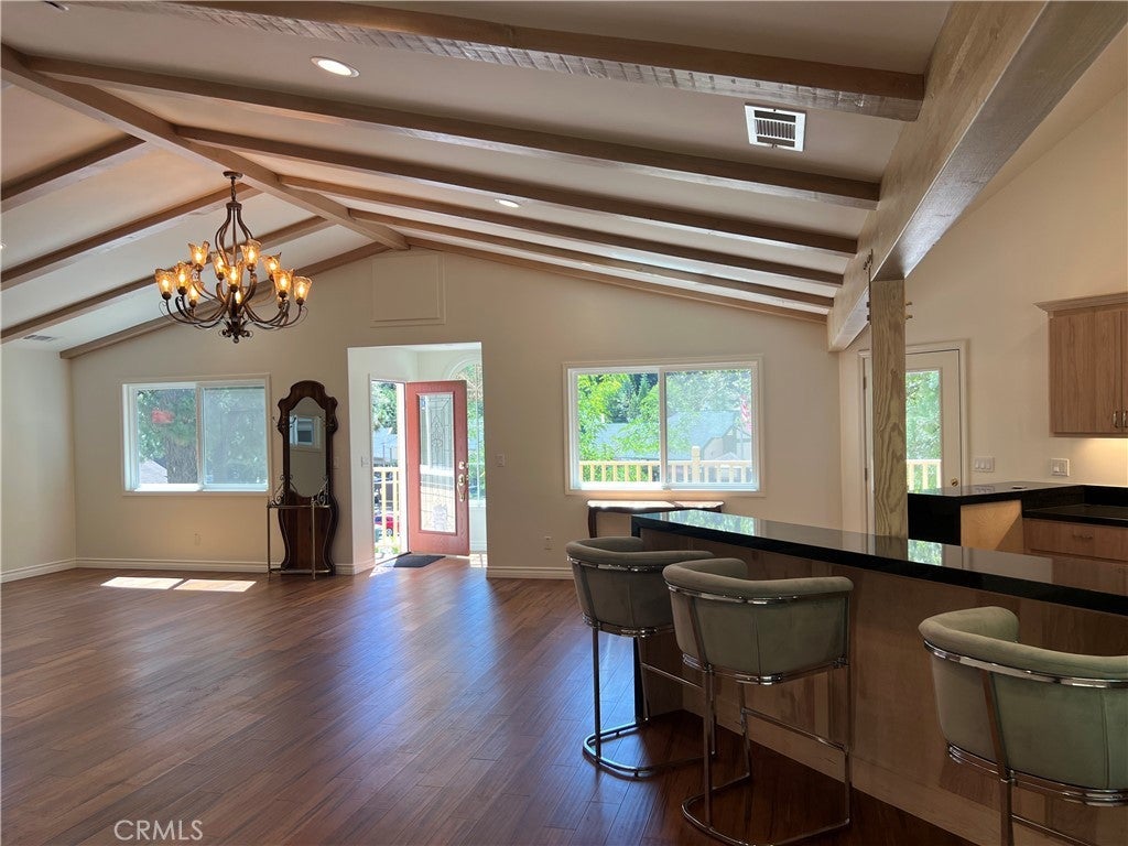 Brand New Construction! Never Occupied! Completed May 25th 2025... Move Right In...Charming! Low Maintenance. Situated on an Exclusive Knoll with just 2 other properties, located in Blue Jay. Walk to Shopping and Restaurants. Easy Access to Hwy. 18! 2 Bedrooms, open Kitchen with Chef’s Bar, Long Black Granite Counter with Bar Chairs. Dining Area will seat 8 and opens to High Beamed Ceiling Living Room with Stone Mantled Fireplace and Hardwood Floors. Brand new New Appliances, Never Used! Custom Bathroom. DEEP Attached Garage with 2 extra parking spaces. Bathroom in garage! Level Entry! Sweeping outdoor Deck for Entertaining. Custom Built to perfection. Pride of Ownership! Owner may carry and open to lease option.