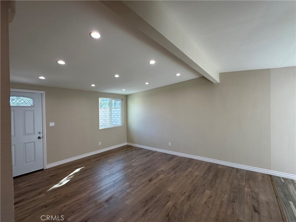 Cute 3BR, 2BA Single Story Home w/ Large Backyard for Entertaining Friends & Family or possible ADU. This home has been beautifully remodeled w/perfect blend of modern finishes & endless potential. Some of the homes Upgrades include New Waterproof Laminate Flooring throughout, New recessed lighting, fresh paint inside & out. There is functional open flow from family room to kitchen. The kitchen has been renovated w/ contemporary cabinetry, new quarts stone counters, new garbage disposal & new pull out faucet. Bathrooms have been remodeled w/ custom built shower, beautiful mosaic tile walls w/ elegant tile design, new vanities, new toilets, all new plumbing fixtures & light fixtures. Nice sized Bedrooms w/ sliding mirror doors. Close to park, shopping & freeways. Perfect FHA Home Must See