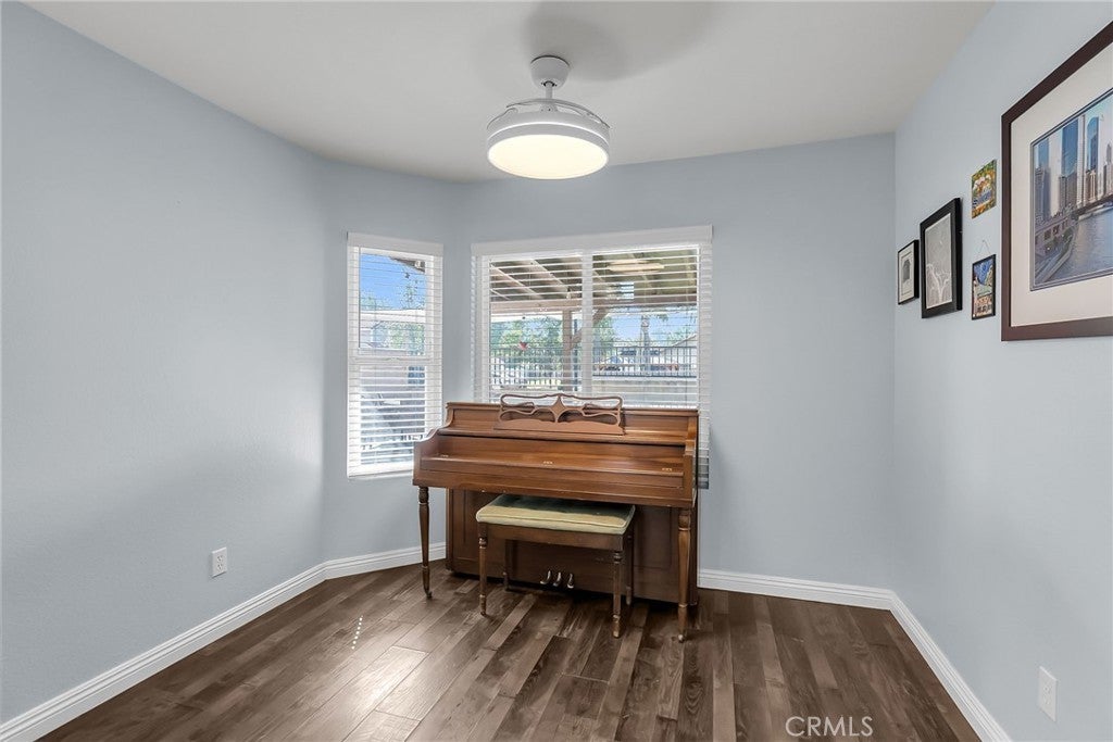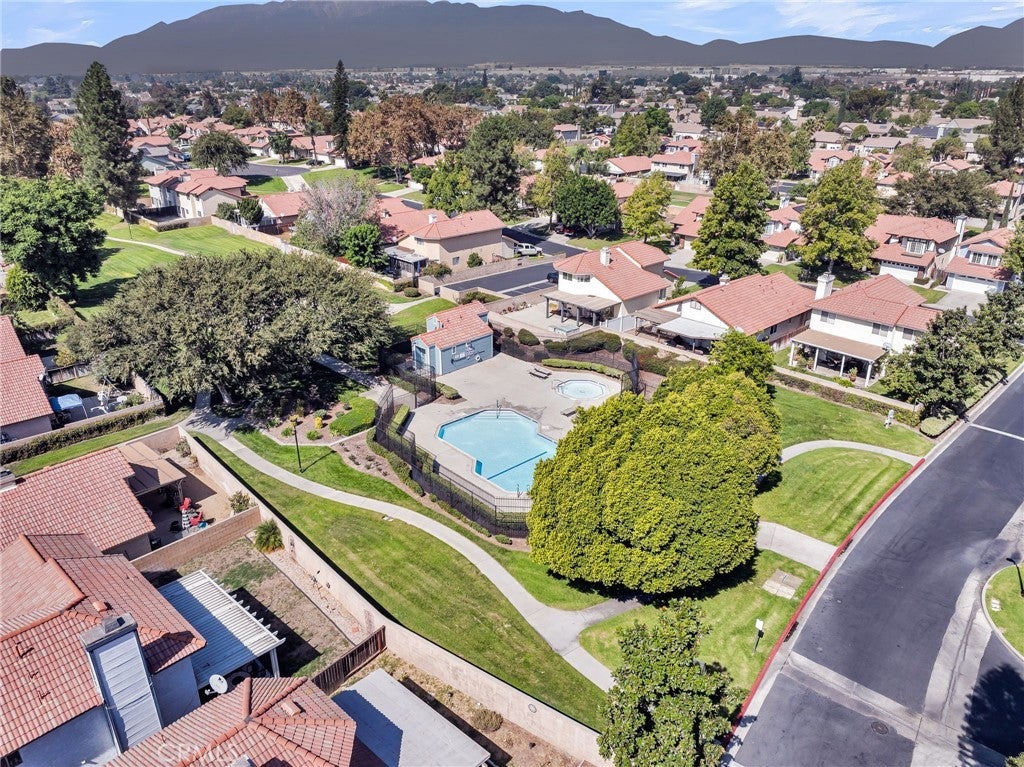 OWNED SOLAR FOR LOW COST LIVING. Solar, Corner Lot, Low Taxes and Upgraded make this Home very affordable. This home in Andover Square Community of Rialto is Move in Ready. The corner lot location with no adjacent rear neighbors provides additional privacy. Upon arrival the beautiful herringbone brick accents along with the lush landscaping will welcome you in. The living room has cathedral ceilings, a cozy fireplace and an abundance of natural lights that cascades throughout the room from the multiple windows. There is a formal dining alcove or currently used as the piano area adjacent to the living room. The kitchen has been remodeled with stainless steel appliances, upgraded warm cherry stain cabinets and stone counter tops. The dining area that is connected to the kitchen is spacious and looks out onto the rear patio. The laundry area is conveniently located near the kitchen and downstair bathroom. Upstairs there are 2 large additional bedrooms, a full bathroom and the primary suite. The primary suite is located towards the rear of the home adding to its privacy. The primary has 2 closets and its own private bathroom; this is the perfect sanctuary you have been searching for. The decorator paint colors and upgraded flooring add to the overall modern feel this home offers. Along with the decorator touches, remodeled kitchen and baths the upgrades also include a newer HVAC. The rear yard has a covered patio, artificial turf and has been thoughtfully designed for low maitenance and entertaining in mind. The shed is completely finished with drywall on the interior and has electrical outlets and lights, making it a perfect art studio or office space. This wonderful neighborhood offers 2 pools, sport courts, walking paths and plenty of green space, it feels like a resort. This home has solar along with low taxes adding to its overall affordability. Located near schools, shopping, restaurants and easy access to freeways for commuters.