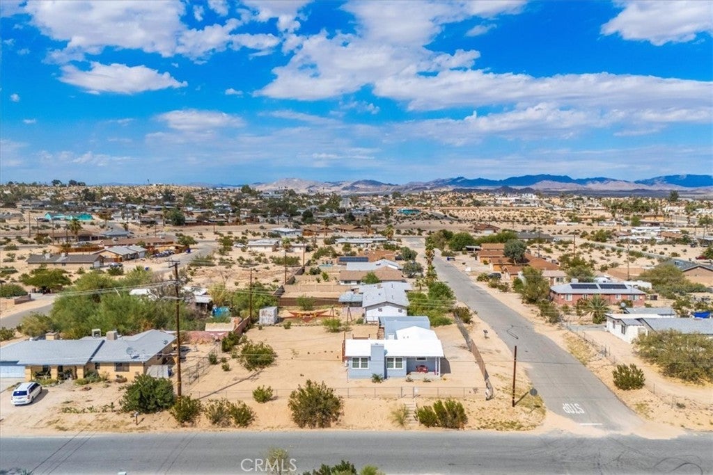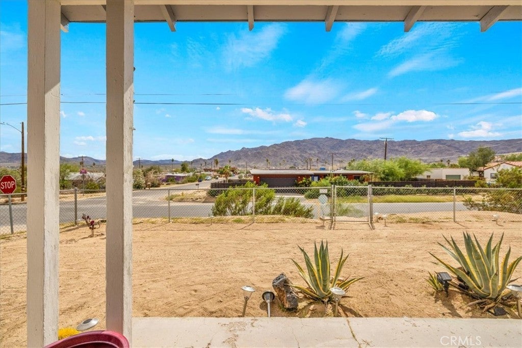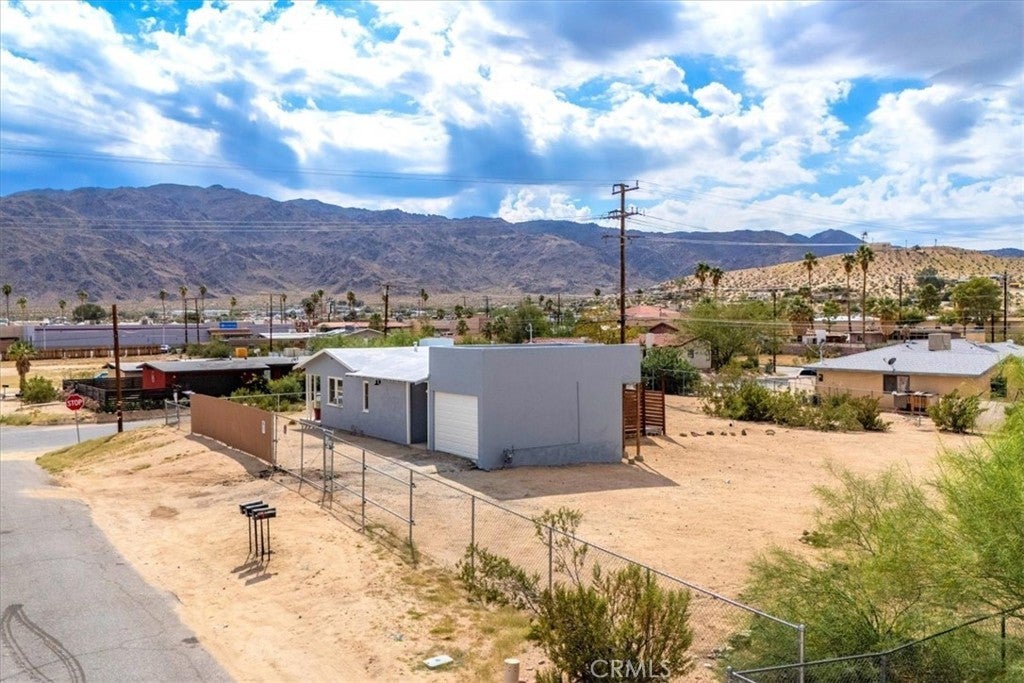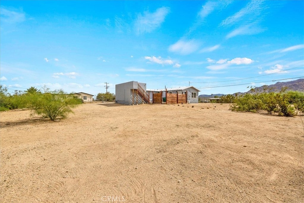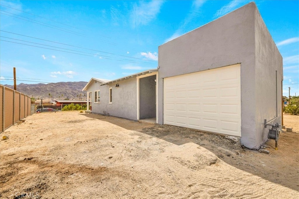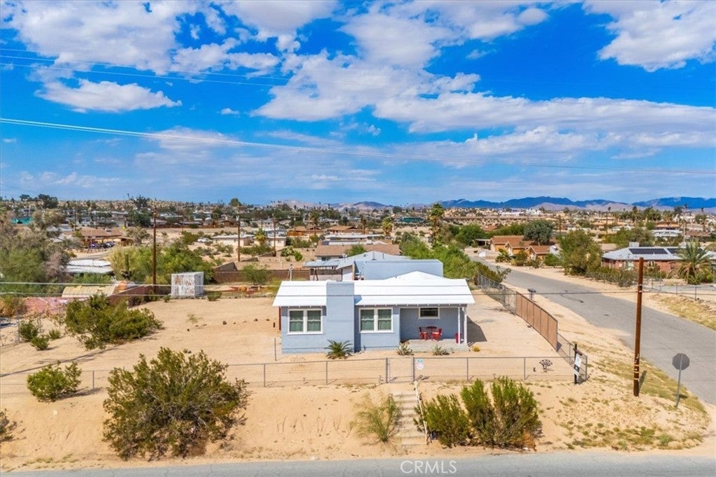 Welcome to your desert retreat in the heart of Twentynine Palms! This charming 2-bedroom, 1-bathroom home PLUS DETACHED GARAGE sits on a LARGE PRIVATE LOT, offering plenty of space to relax and enjoy the peaceful desert surroundings. Step inside to find a warm and inviting living area complete with a cozy fireplace, perfect for cool desert evenings. The home features an open and functional layout with a comfortable flow between the living, dining, and kitchen areas. A washer and dryer are also included for your convenience. The expansive backyard provides ample room for entertaining, gardening, or simply soaking in the serene atmosphere. Enjoy breathtaking desert views and sunsets from the rooftop patio, creating an ideal space for quiet relaxation or stargazing. Located just a short drive from Joshua Tree National Park, this home offers easy access to hiking, outdoor adventures, local restaurants, shops, and unique desert attractions. Whether you’re seeking a peaceful full-time residence, vacation getaway, or investment opportunity, this cozy home on a large private lot is ready to welcome you!