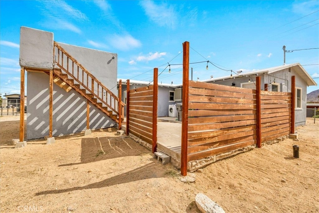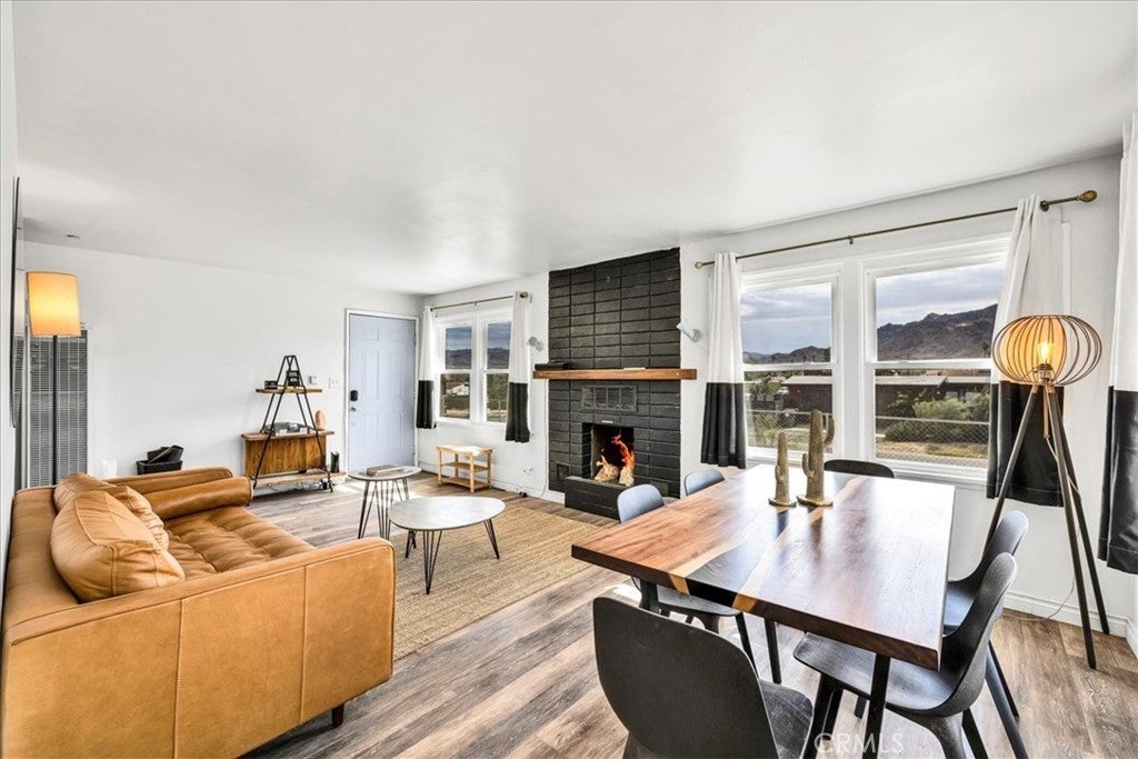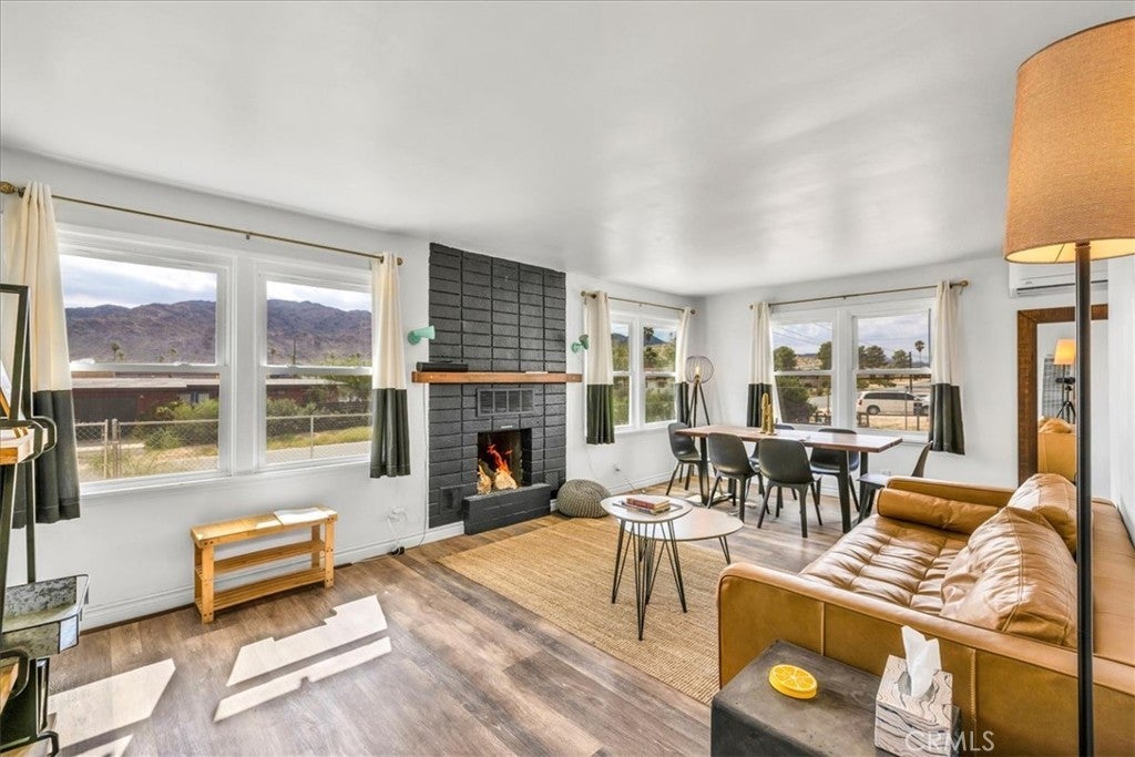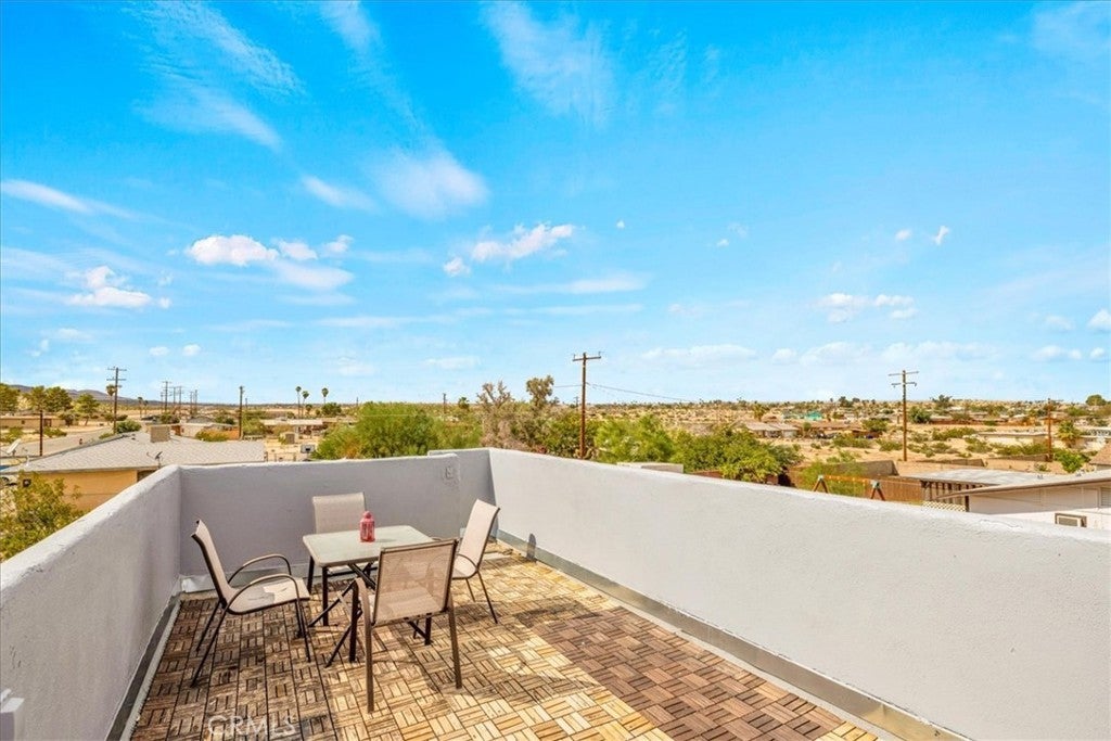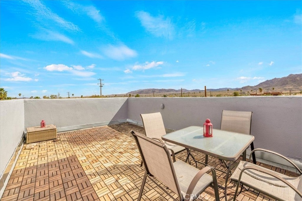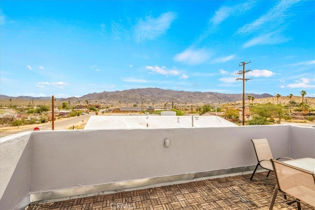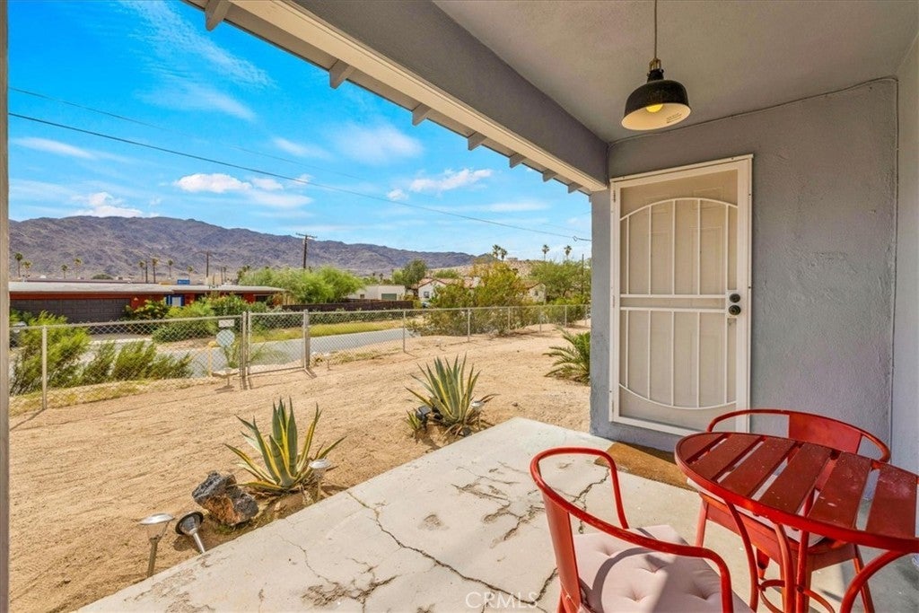 Welcome to your desert retreat in the heart of Twentynine Palms! This charming 2-bedroom, 1-bathroom home PLUS DETACHED GARAGE sits on a LARGE PRIVATE LOT, offering plenty of space to relax and enjoy the peaceful desert surroundings. Step inside to find a warm and inviting living area complete with a cozy fireplace, perfect for cool desert evenings. The home features an open and functional layout with a comfortable flow between the living, dining, and kitchen areas. A washer and dryer are also included for your convenience. The expansive backyard provides ample room for entertaining, gardening, or simply soaking in the serene atmosphere. Enjoy breathtaking desert views and sunsets from the rooftop patio, creating an ideal space for quiet relaxation or stargazing. Located just a short drive from Joshua Tree National Park, this home offers easy access to hiking, outdoor adventures, local restaurants, shops, and unique desert attractions. Whether you’re seeking a peaceful full-time residence, vacation getaway, or investment opportunity, this cozy home on a large private lot is ready to welcome you!