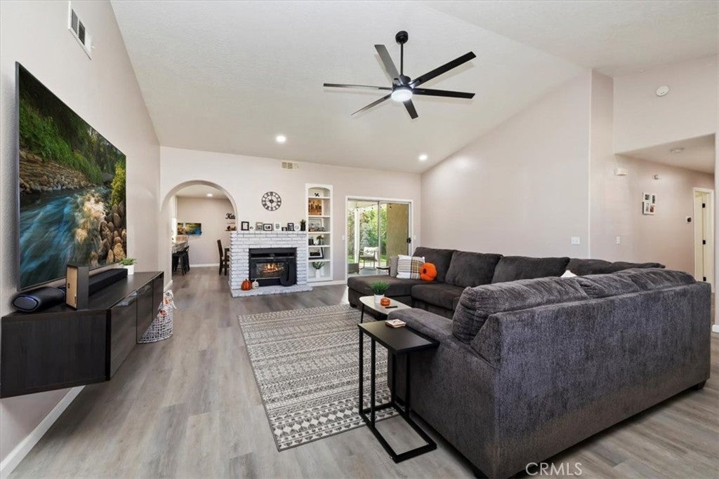 Welcome to this beautifully updated 3-bedroom, 2-bath ranch-style home that perfectly blends comfort, style, and modern convenience. Step inside to discover remodeled flooring throughout and upgraded windows that fill the home with natural light while improving energy efficiency. The spacious living area flows seamlessly into the kitchen and dining space, highlighted by a beautiful double-sided fireplace that connects the living and dining rooms—creating warmth and ambiance for gatherings or quiet evenings at home. New ceiling fans throughout the home provide added comfort and energy efficiency, while the primary suite features a large walk-in closet, offering plenty of storage and a private retreat within the home. Outside, enjoy low-maintenance turf landscaping in both the front and backyard, creating a lush, green look year-round. The back patio has been completely redone, providing the perfect spot for outdoor entertaining. The refreshed front yard adds the finishing touch to this move-in-ready gem. Conveniently located near schools, parks, and shopping, this home offers the ideal balance of modern updates and timeless charm. Don’t miss your chance to make this stunning property yours!