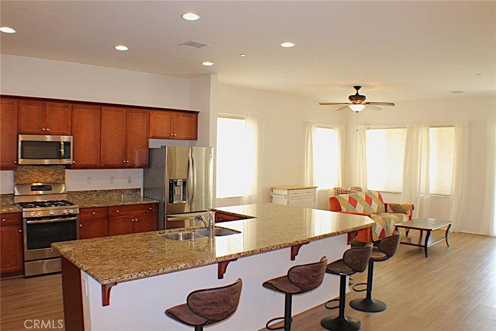 Breakfast Bar, Ceiling Fan(s), Granite Counters, Bedroom on Main Level, Main Level Primary, Multiple Primary Suites, Walk-In Closet(s)