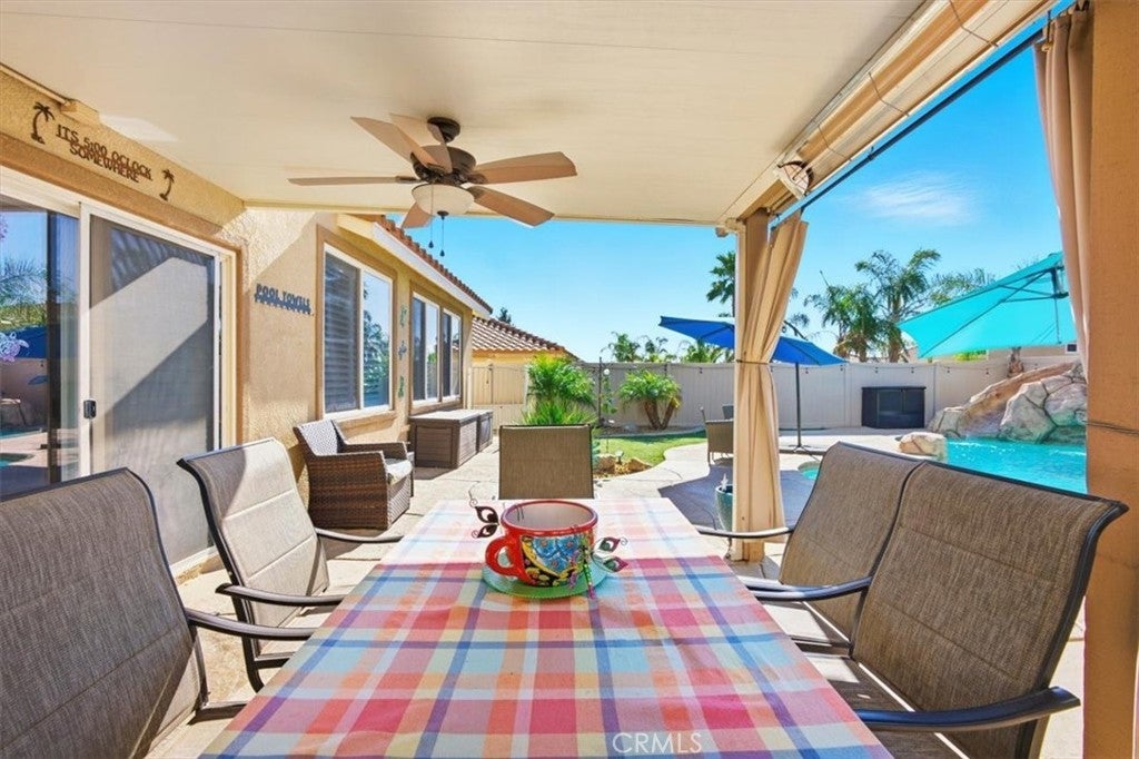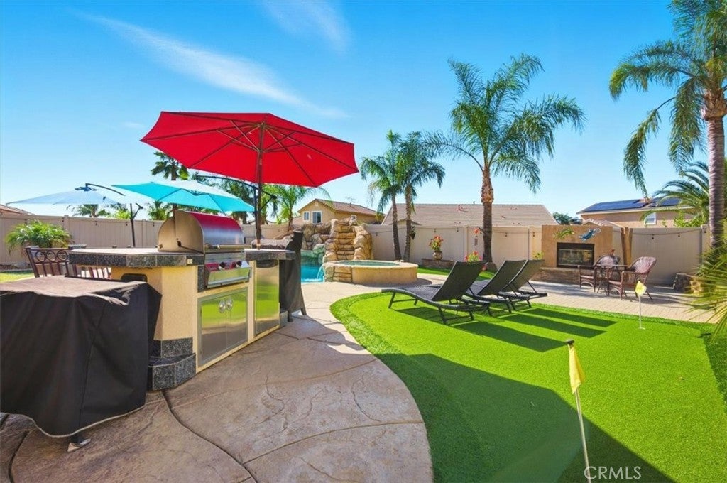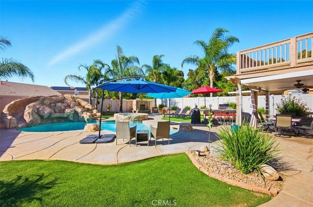 Your Dream Home in the Heart of Sundance! This stunning home offers the perfect blend of luxury, functionality, and year-round fun—inside and out. Step into your resort-style backyard, complete with a private pool & spa, waterslide, and waterfall—ideal for entertaining guests or enjoying peaceful family time. The artificial lawn ensures low maintenance, while the Alumawood patio cover adds shade and style for outdoor dining or relaxing. Fire up the built-in grill next to the outdoor fireplace or enjoy tranquil views from your private upstairs balcony, or practice putting on your own putting green. A park down the street with a playground to take your children or walk your dog/s. Inside, you’ll find a meticulously maintained, model-quality interior featuring: • A spacious Great Room floor plan with a built-in entertainment center • Stylish and energy-efficient plantation shutters throughout, as well as crown moulding • A well-appointed kitchen with granite countertops, white cabinetry, and stainless steel appliances • A convenient laundry room located just off the kitchen • A versatile downstairs office/den, which can be used as a guest bedroom, located next to the guest powder room Upstairs, the luxurious master suite offers: • Double French doors leading to a private balcony overlooking your backyard oasis • A walk-in closet, dual sinks, a separate soaking tub, and a walk-in shower • Built-in Bluetooth speaker/sound system for ultimate comfort and convenience Additional highlights include: • The side yard could be made into a dog run or garden area • Small built-in fireproof safe in the guest bedroom Whether you're hosting friends, relaxing under the stars, or simply enjoying the best of indoor-outdoor living, this home truly has it all. Don't miss your chance to own this exceptional property in the heart of Sundance. Schedule your showing today!