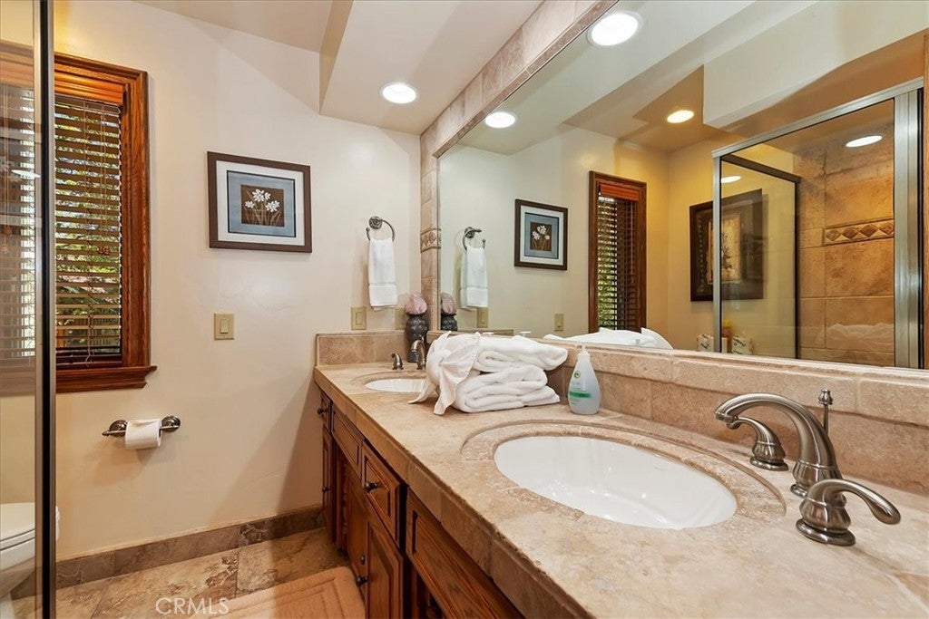 Tucked away in Big Bear’s coveted Village area, this unexpected Tudor-style estate is like no other — a private compound offering unmatched craftsmanship, serenity, and grandeur on nearly two acres of park-like grounds. Behind its gates lies your own private forest of towering pines and manicured pathways leading to charming gazebos, arched bridges, barbecue pavilions, and a turf sports court framed by the two-bedroom guest house. The main residence spans over 10,000 square feet across three levels, designed for both entertaining and peaceful retreat. On the lower level, an indoor rock grotto spa with its own bar sets a resort-like tone, complemented by a gym, sauna, and wine cellar. The main floor invites gatherings with a game room and full bar opening to a wraparound balcony and extensive outdoor patio. There is a spacious family room with a double-sided stone fireplace, a formal dining room, and a grand kitchen built for culinary inspiration. Also on this level are a private mother-in-law suite, an additional guest suite, 2 guest bathrooms, laundry room and walk in butlers pantry. The focal point of the entry, a sweeping circular staircase, leads to the upper level where the primary suite and retreat anchor the floor, along with two additional bedrooms and a stunning family room crowned by vaulted wood-beam ceilings. You will also find a richly detailed den with handcrafted beamwork surrounding the fireplace — currently used as a bedroom, though perfectly suited for a library or private study. The guest house, equally inviting, offers two bedrooms and its own living spaces ideal for extended family, staff, or short-term rental use. Suitable as a primary residence, vacation retreat, or legacy family compound, Edgewood Mansion is also an exceptional investment opportunity — with its scale, layout, and proximity to the Village, the lake and ski resorts offering potential for transformation into an exclusive event venue or continue its use as a luxury rental destination. Having been recently refreshed with thoughtful updates, including a brand-new 50-year fire-rated Presidential roof, new exterior doors, upgraded heaters, Trex decking and fresh exterior paint. This rare estate combines the timeless charm of Old-World architecture with modern livability, delivering a lifestyle that is both storybook and spectacular.