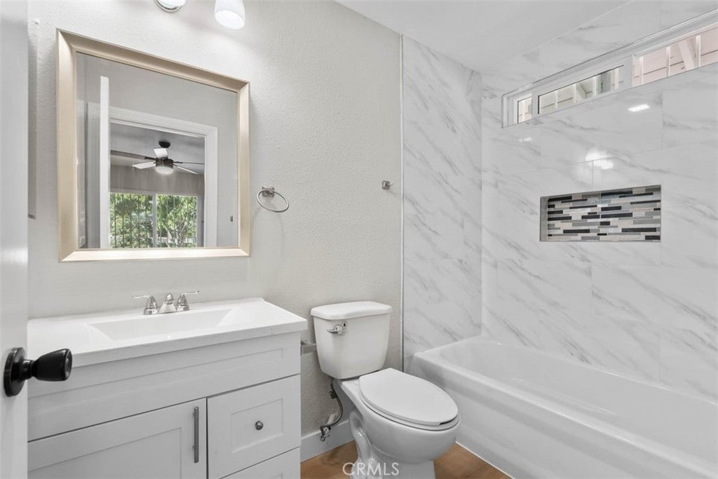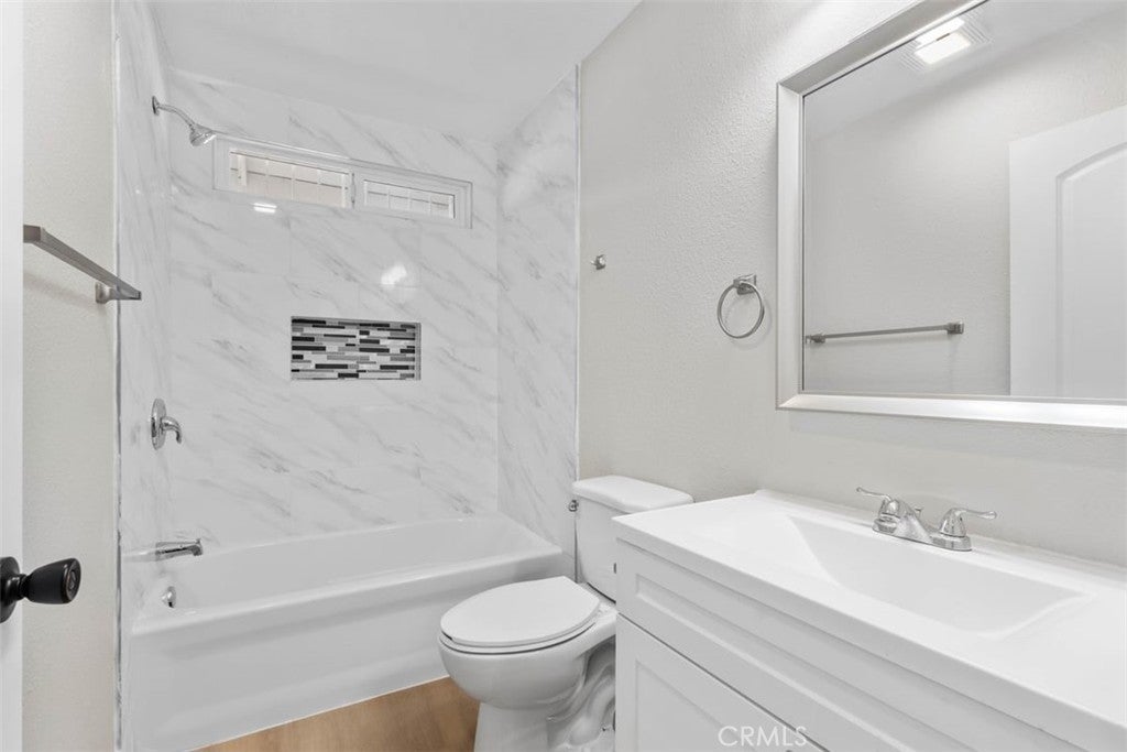 Beautiful Turnkey 3 Bedroom 2 Bath House with Attached 2 Car Garage in San Bernardino. With Direct garage access. Exterior and Interior Have Been Completely Remodeled. Exterior Features New Windows, New Paint, New Garage Door, and Freshly Landscaped Front Yard. Interior features New Paint, New Baseboards, New Panel Doors, New Light Fixtures, Recessed Lighting, Ceiling Fans, and SPC Wood Look Vinyl Flooring Throughout. There are 3 Good Sized Bedrooms with Good Closet Space. There is a Master Bedroom with it's own Full Bathroom and a Walk-In Closet. Bathrooms have been Remodeled with New Tiled Shower / Tub, Toilet, Sink, Fixtures, and Vanity with Quartz Counter Top. Living Room Features Plenty of Space for All your Furniture. Kitchen is Remodeled with New Cabinets, New Quartz Counter Tops, New Sink, New Range Hood, New Fixtures, Free Standing Stove Oven, Garbage Disposal, and New Dishwasher. House features Central Heat and A/C. House has a Back Yard. Not too far from Baseline and the 215 Freeway. There is Shopping, Schools and Dining Nearby. Call Today to Take a Look At this Great Property!