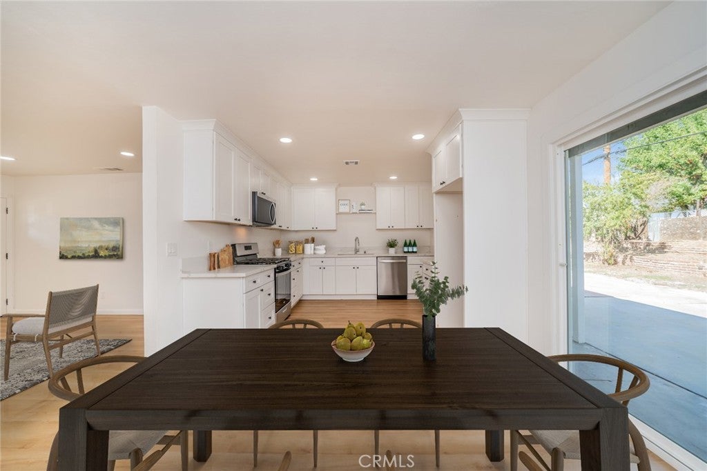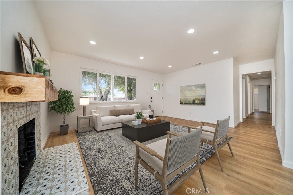 Stylishly Remodeled and move-In Ready! Discover the perfect blend of modern design and everyday comfort in this beautifully renovated single-story home located in North San Bernardino. Featuring 4 bedrooms and 2 updated bathrooms, this home has been thoughtfully refreshed from top to bottom with today’s most sought-after finishes. A lush new lawn and vibrant landscaping create standout curb appeal. Inside, a bright and open floor plan welcomes you with recessed lighting, modern tile and wood-laminate flooring, and designer touches throughout. The spacious living room showcases a striking tiled fireplace and expansive windows that fill the space with natural light. The open dining area flows into a fully remodeled kitchen complete with white shaker cabinetry, quartz countertops, and new stainless steel appliances—ideal for everyday meals and effortless entertaining. All four bedrooms are generously sized and feature ceiling fans and ample closet space. The hall bathroom includes sleek, modern finishes and a stylish shower/tub combo, while the primary suite offers its own private bath with a step-in shower and contemporary upgrades. Step outside to a spacious backyard designed for gatherings, gardening, or quiet relaxation. A detached bonus room—already equipped with gas, hot and cold water, and drainage—presents incredible potential for an ADU, home office, studio, outdoor kitchen, or home-based business setup. Additional upgrades include a new HVAC system, new water heater, new windows and doors, and a convenient indoor laundry area. Close to schools, shopping, and dining, this turnkey property delivers modern style, thoughtful improvements, and an unbeatable location. Don’t miss your chance to view this exceptional North San Bernardino home—schedule your private showing today!