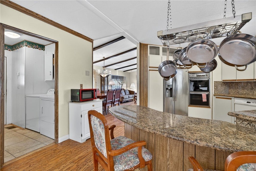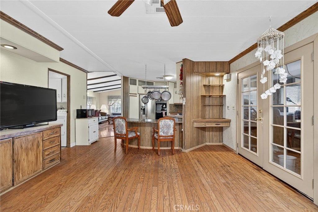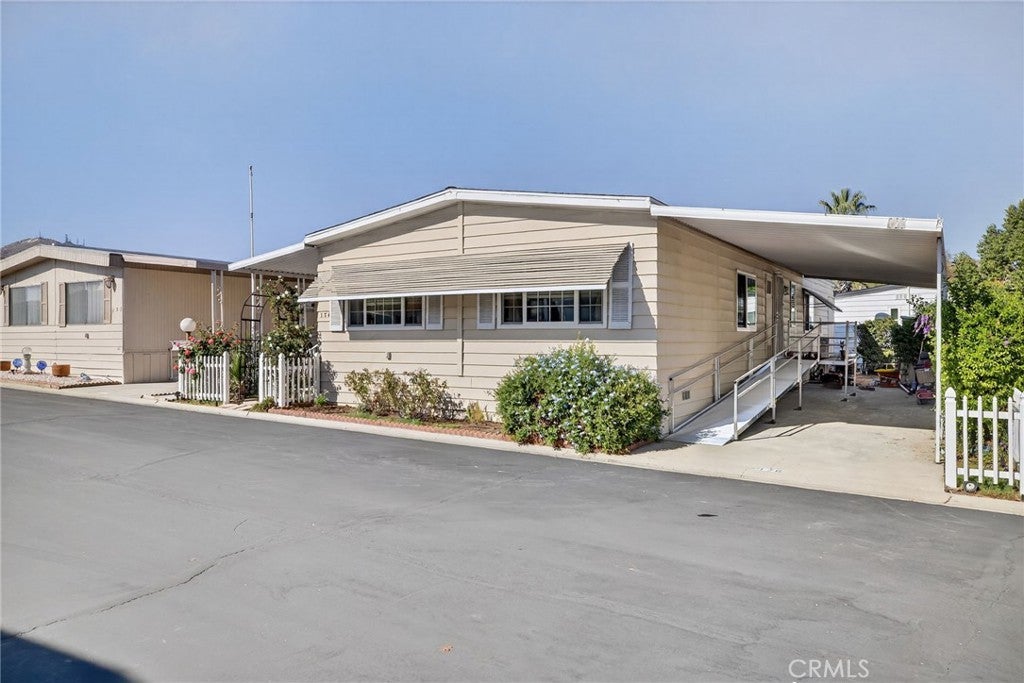 Welcome to 23820 Ironwood Ave #176, Moreno Valley – a charming 2-bedroom, 2-bath home in the friendly 55+ Il Sorrento community! Step inside to find a bright, open layout with high ceilings, skylight, and beautiful wood floors. Enjoy the comfort of new bedroom flooring, updated plumbing, and a newly installed HVAC system. The home also features a spacious kitchen with marble counters, a cozy office area, laundry room, and plenty of storage with an outdoor shed. Relax on the large covered porch with ramp access (ramp belongs to the association), perfect for morning coffee or evening sunsets. The community offers year-round activities and gatherings, creating a warm and welcoming place to call home. Conveniently located near shopping, dining, and medical services — this home offers comfort, convenience, and community all in one.