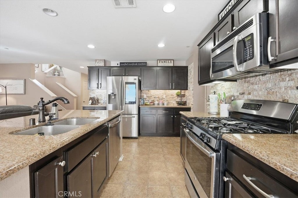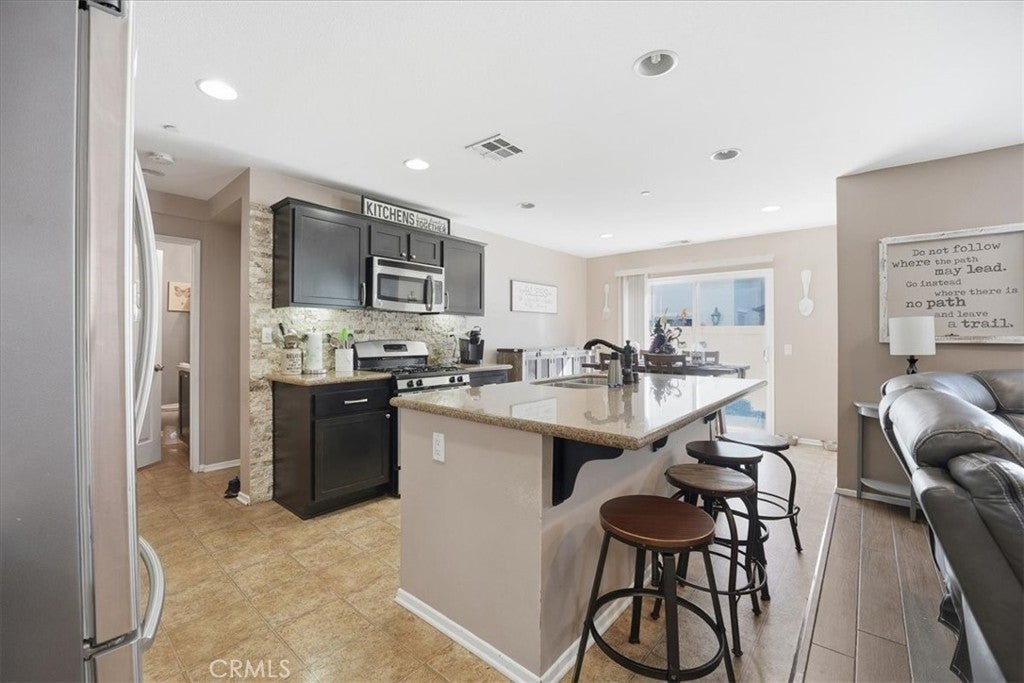Located in the desirable Estrella gated community, this detached two-story condo offers comfort, convenience, and flexibility. Estrella features a pool, playground, and gated access, and the home is just minutes from the 10 freeway, schools, shopping, hospitals, parks, Downtown Redlands, Cabazon Outlets, Morongo Casino, and more. The open-concept layout connects the living, dining, and kitchen areas, making it ideal for everyday living and entertaining. The kitchen is a highlight, featuring granite countertops, gorgeous stone backsplash, stainless steel appliances, and plenty of cabinet space. Tile flooring runs throughout the main living areas, with carpet in the bedrooms and laminate in the bathrooms. A bedroom and full bathroom downstairs add flexibility for guests, an office, or multigenerational living. Upstairs, you’ll find a spacious primary suite with an en-suite bath, two additional bedrooms, a full hall bathroom, and a large laundry room. The private, low-maintenance backyard provides space to relax or entertain, and the attached two-car garage includes a projector screen setup—perfect for game days or weekend projects. This is a wonderful opportunity to own a beautiful home in a thriving community. Schedule your showing today!