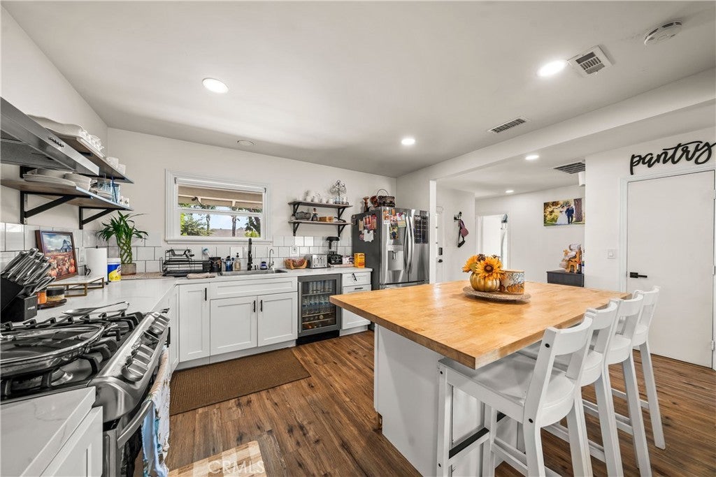 Upgraded & Remodeled home - Inside & Out!!! Enjoy this open concept floorplan with luxury vinyl wood floors, quartz countertops, large butcher block kitchen island with bar seating, shaker cabinets, recessed lights, designer finishes, ample natural light, 2 year old plumbing, new tankless water heater, new electrical panel, front door combo pad, and more! The expanded baths are visually stunning. Oversized driveway is lined beautifully by blooming white roses, and gives you plenty of space for extra parking and usability. Low maintenance front yard with turf, and a fruitful lemon tree. You're sure to make lasting memories in the back which has been completely transformed into a relaxing entertainers dream, including, Large fire pit area, wraparound covered patio which has been wired with recessed lighting, speakers, and brand new ceiling fans; full barbeque/grill with kitchenette area, cooler fridge, new sink, outlet, and single burner stovetop. The brand new jacuzzi is negotiable, it has not been installed, filled or used. You will enjoy this quiet, family-friendly neighborhood, with easy freeway access, close to dining and all entertainment needs!