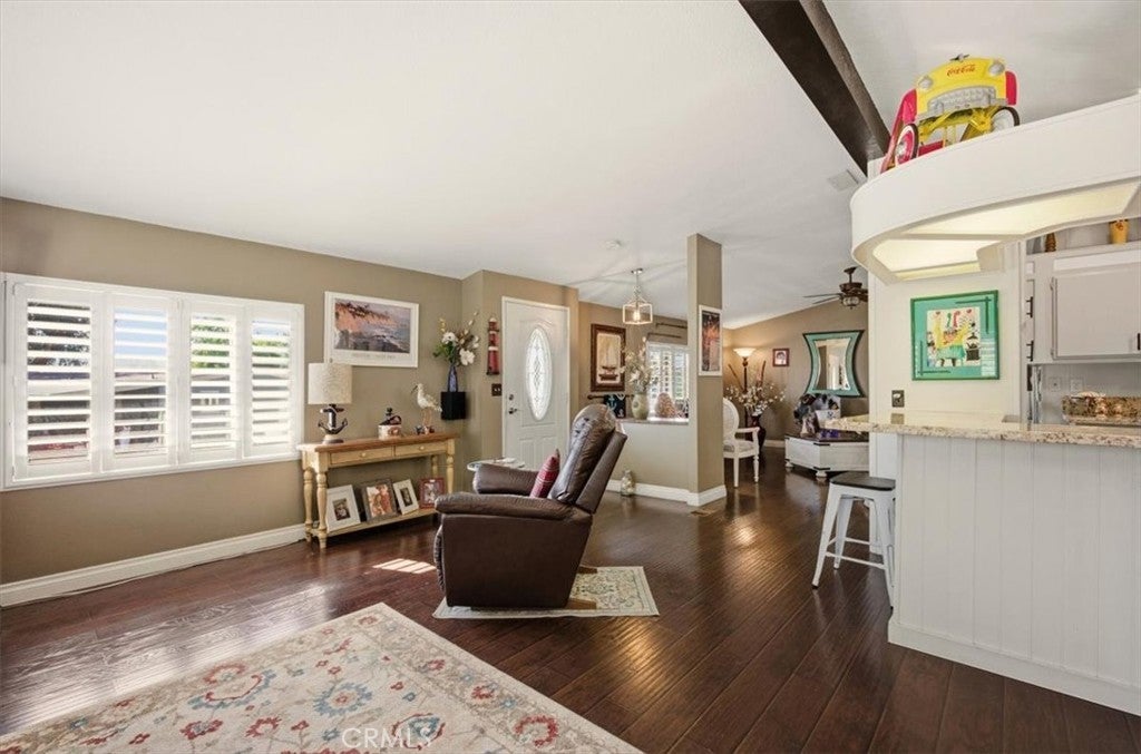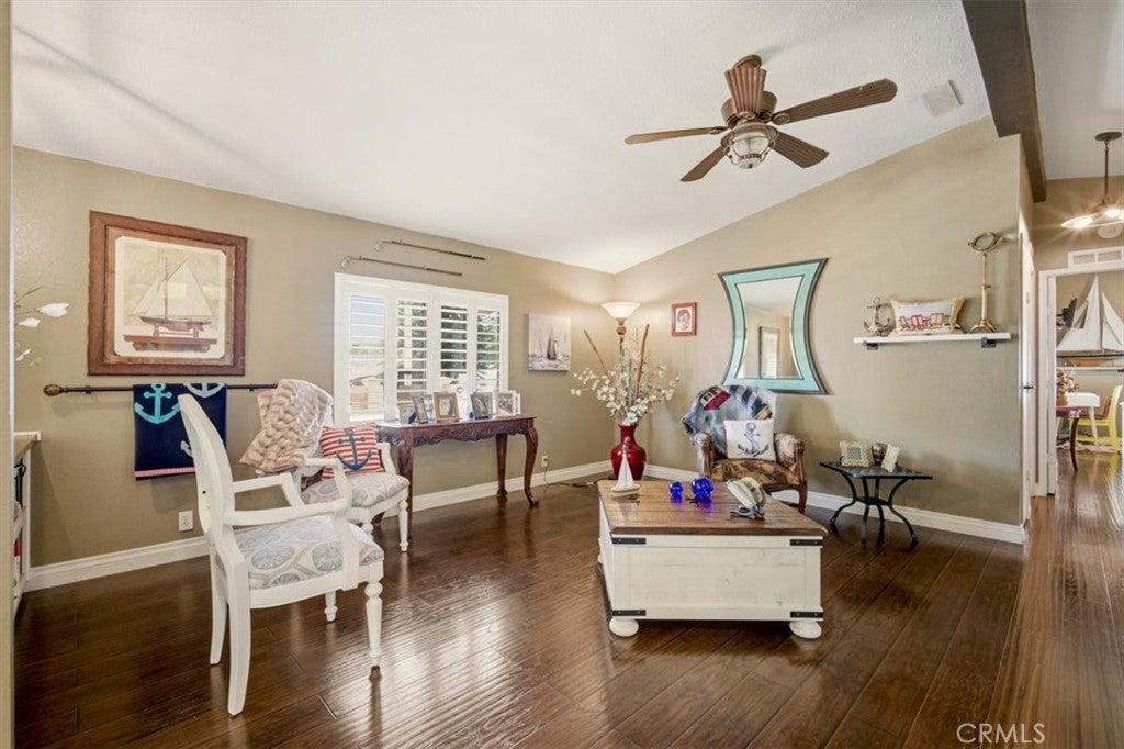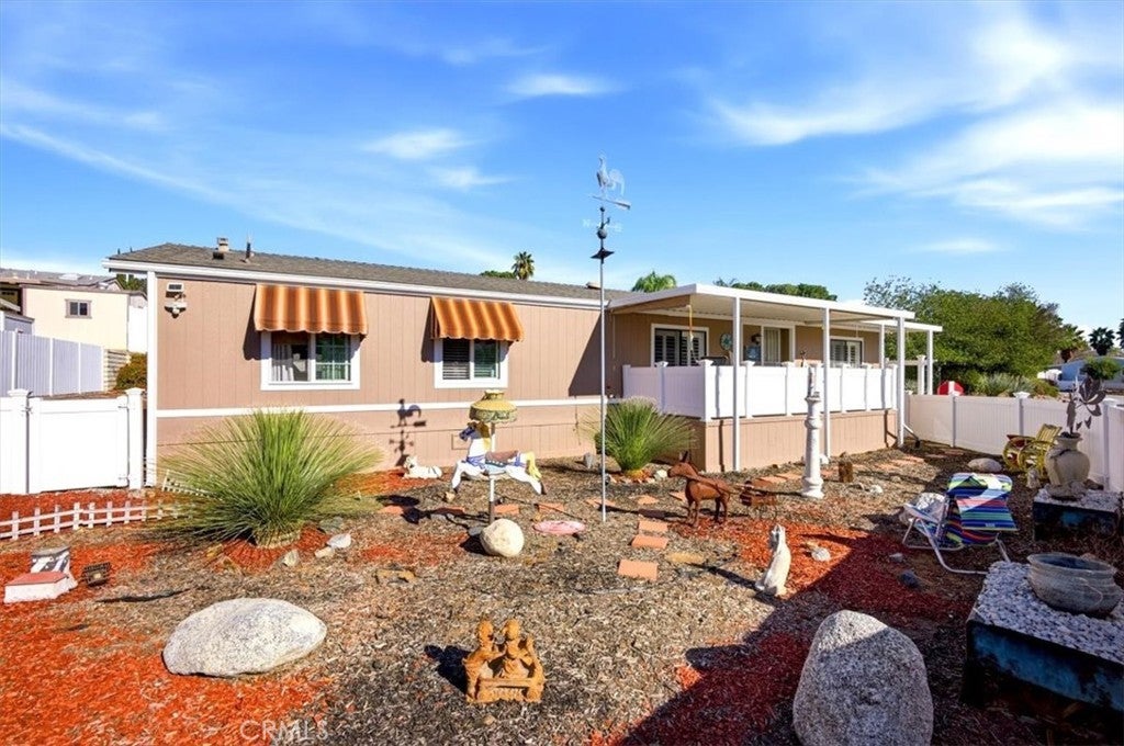 REDUCED! This Home shouts Pride of Ownership!!! Upgrades Galore! Nestled on a Corner Lot with Large back Yard with Vinyl Fencing. The homes Outside was Painted a year ago. Many upgrades to the outside include. Front and back porches upgraded, Home has been Leveled and Earthquake Braced. Custom Window Shades to keep home cooler in Summer. The Walkways are Granite. The Parking Area was widened to park two small cars side by side. Also Motion Dectection Lighting. The Outside Lanscaping is Desert Theme low maitenance. The inside of the Home is Like a Model. Freshly Painted with Upgrdes Galore. Front Custom Door with Glass. You will first notice the Tall Vaulted Ceilings and The Custom Laminite Wood Flooring with Mouldings throughout. The Kitchen has been remodeeld with Granite Counters, New Sink and plumbing and recessed Lighting. The home has Dual Pane Windows and Custom Shutters. Both Baths have also been Remodeled. Master bath has new Glass shower with tlled walls and Floor. So much to share. This home is a MUST SEE! All this in the most sought after Park in the IE ammenities galore. Like Living in a Resort. 3 Pools, 1 Tennis court and 2 Pickleball Courts, Spa and Workout Room, PicNic Area, and Dog Park. etc etc
