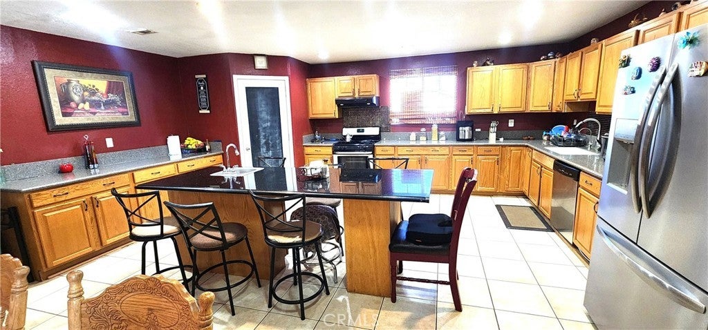 This beautiful property offers 2,608 sq. ft. of living space, featuring 4 bedrooms and 3 bathrooms, including two master suites, a large living room, and a family room with a fireplace. The open and spacious kitchen offers plenty of cabinets and a convenient pantry. One of the master bedrooms is very large, featuring a double vanity, a jacuzzi-style tub, and a walk-in shower. The laundry room is located inside the house, right next to the garage for added convenience. The lot is huge, providing ample space for your RV, extra vehicles, or outdoor toys, and it also includes horse stables — perfect for your animals or horses. A unique, comfortable, ready for you to enjoy!