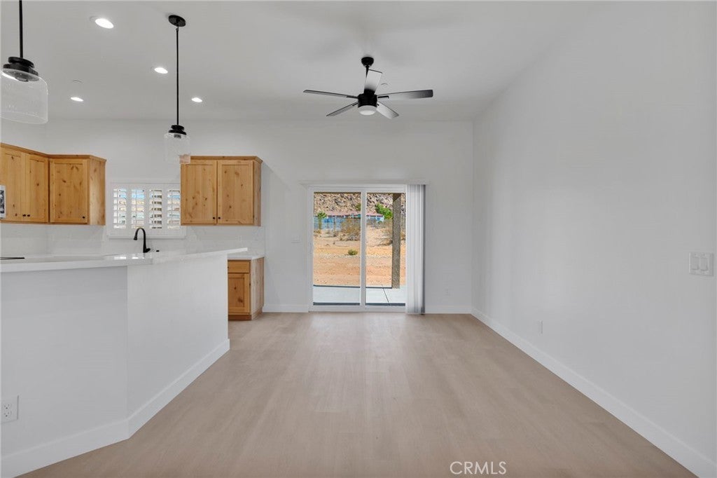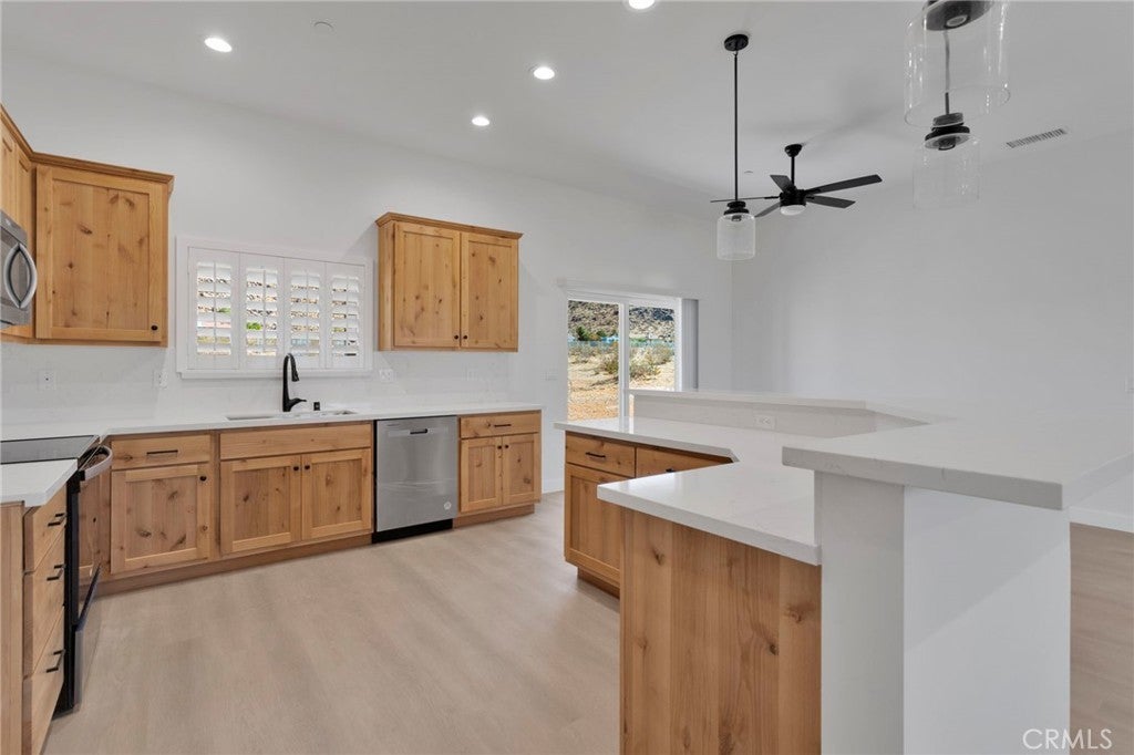 Welcome to this beautifully designed single-story home located in the city of Apple Valley. This new construction home offers a split floor plan with 4-bedrooms and 2-bathrooms. Step inside to find a bright open-concept layout with high ceilings, can lighting and upgraded flooring through-out the home. Kitchen offers quartz countertops, stainless steel appliances, sleek cabinetry and a pantry. The primary master suite offers ample space with an en-suite bathroom and a spacious closet. Outside enjoy a covered patio and beautiful views of the high desert. Home sits on over half an acre that provides plenty of space for privacy, RV access, off-road vehicles and horses. This home offers a 2-car garage, paid off solar, indoor laundry area, ceiling fans and upgraded window coverings through-out. Come see 15575 Desert Star Road!