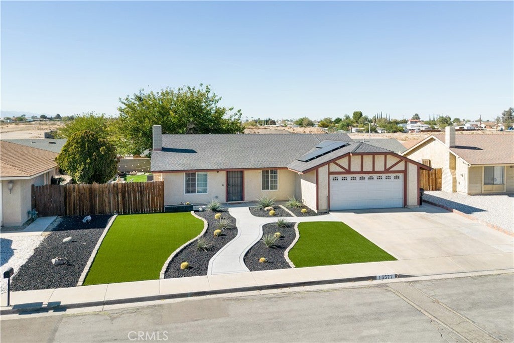 EASY TO VIEW - COME SEE IT TODAY OR THIS WEEKEND!! Welcome to 13577 Arroyo Drive, a beautifully updated 3 bedroom, 2 bathroom home located on a quiet, tree-lined street in an established Victorville neighborhood. This standard sale is move-in ready and features newer flooring, fresh interior and exterior paint, updated modern light fixtures, and refreshed bathrooms with newer vanities and finishes. The layout includes comfortable living and dining spaces with good natural light throughout. The home also benefits from major mechanical upgrades. A new gas furnace, air conditioning system, and water heater were installed around 2020 to 2021. The roof and solar system were both installed in 2023, providing long-term energy efficiency and peace of mind. Outside, the home offers custom wraparound stamped concrete hardscaping, a low-maintenance turf front yard, and a fully fenced backyard. A large mature shade tree and firepit sitting area create a welcoming outdoor space for relaxing or entertaining. The location is a real plus. This home is within walking distance of Galileo Academy School of Gifted and Talented Education, making it a great fit for growing families or long-term tenants. It is also less than 10 minutes from Victor Valley College, multiple golf courses, shopping centers, dining options, and local entertainment. Quick access to the I-15 freeway supports an easy commute to Inland Empire, Victor Valley, and LA basin job centers. *** BONUS: No HOA and a low property tax rate help keep overall costs affordable. The home qualifies for first-time buyer and VA financing programs. Easy to show. Schedule your visit today. ***