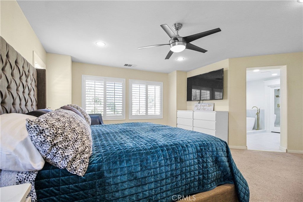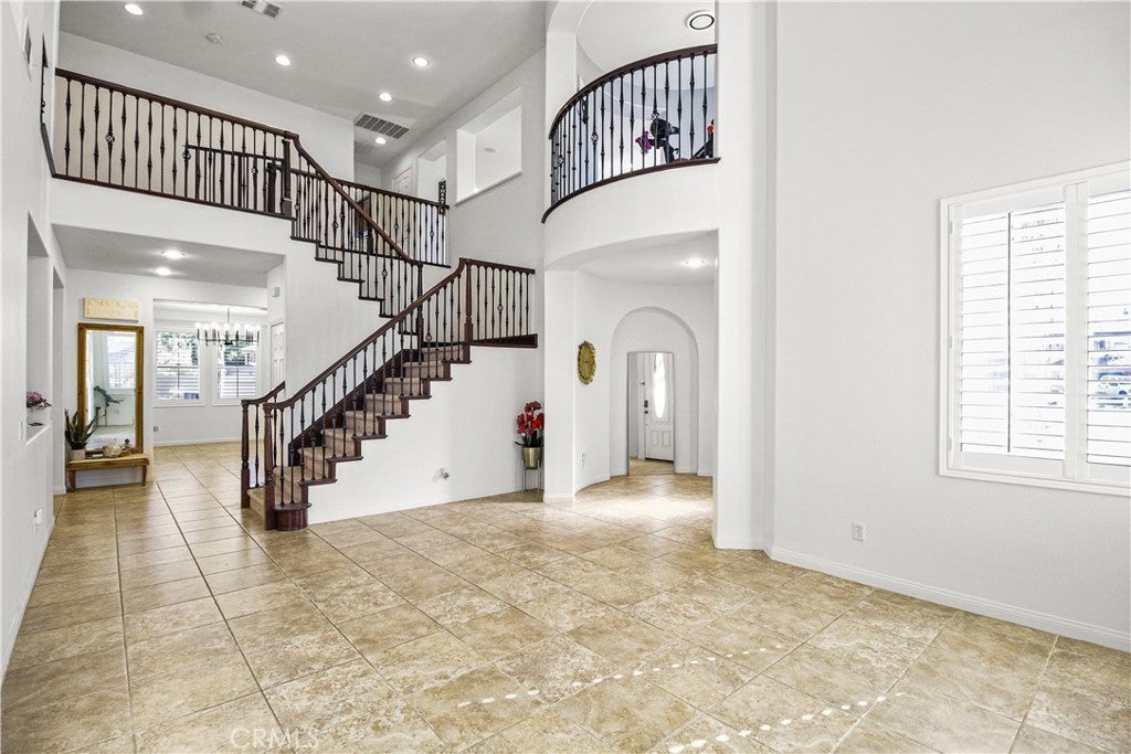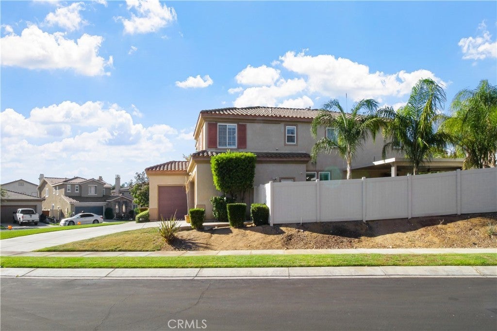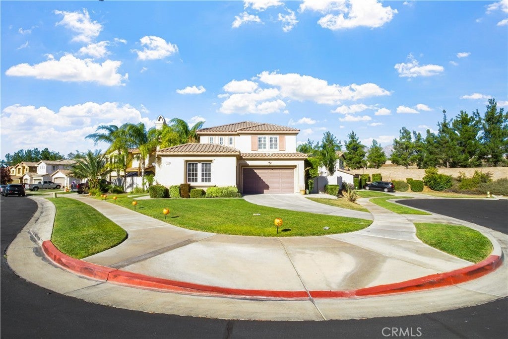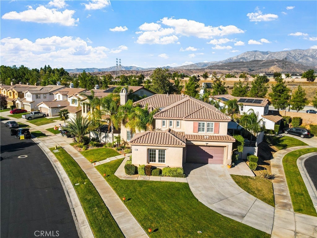 Welcome to your premier luxury home in Beaumont’s most sought-after gated community, privately set at the end of a peninsula street near the PGA golf course and walking distance to Tournament Elementary. The community offers 24-hour patrol, private fishing lakes, and fast access to the I-10 and 60 freeways, placing you just 40 minutes from Palm Springs, 10 minutes from Morongo Casino, and about 70 miles from Los Angeles. This location delivers security, prestige, and effortless convenience with a true resort-style atmosphere. A grand foyer with vaulted ceilings and a dramatic staircase introduces a refined interior designed for both elegance and everyday comfort. The first floor features full tile flooring and a flowing layout with a separate dining room, a separate living room, and a spacious family space that connects to a chef-inspired kitchen with granite counters, full tile backsplash, a large island seating six to eight, a gold farmhouse sink, stainless steel appliances, and custom roll-out shelving. A main-level guest bedroom and full bath with direct pool access make multigenerational living or hosting overnight visitors seamless. Upstairs offers laminate and carpet flooring, an open loft overlooking the main living space, and a dedicated theatre room with high-end audio-visual setup for a true cinematic experience. The primary suite serves as a private retreat with a spa-style bathroom featuring a free-standing soaking tub, LED mirror and lighting, and a custom walk-in closet with built-ins. Two additional bedrooms, a full bath, and an upstairs laundry room with sink add comfort and functionality. The backyard, showcased on HGTV’s Pool Kings, delivers a private resort experience surrounded by mature palms. A PebbleTec heated pool and spa with Aqualink smart control is paired with a built-in outdoor kitchen with grill, island, mini-fridge, and TV. The covered patio includes ceiling fans and custom lighting, while uplighting throughout the yard enhances evening ambience. Two outdoor storage sheds discreetly boost utility without compromising style. An oversized three-car garage features epoxy floors, custom cabinets, hanging racks, a workspace, and a Tesla charger. Additional upgrades include custom shutters, fresh interior paint, a Google Home camera system, and impeccable maintenance throughout. With luxury finishes, smart technology, true indoor-outdoor living, and a layout that supports entertaining and multigenerational needs.