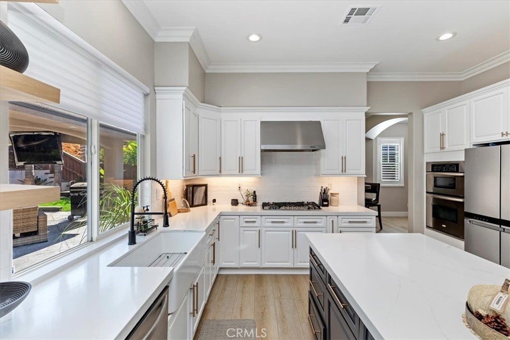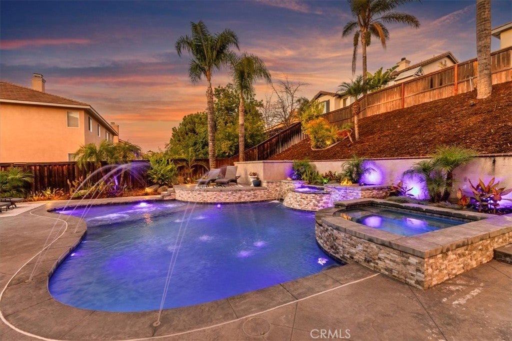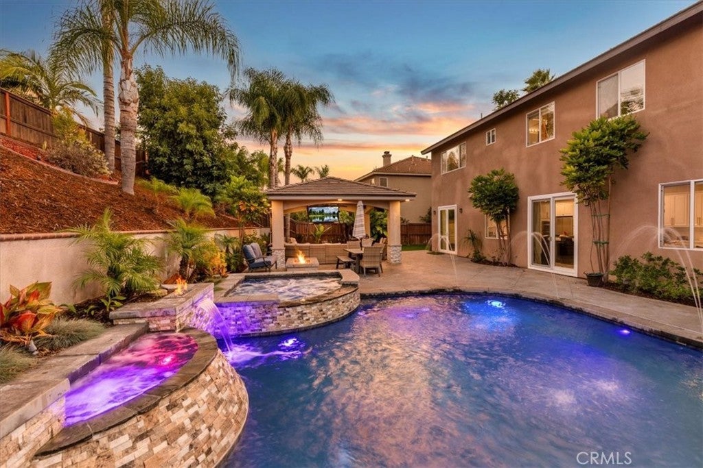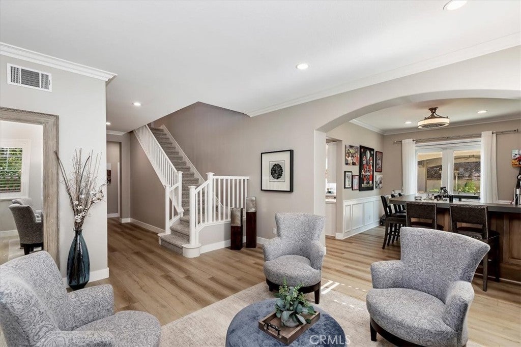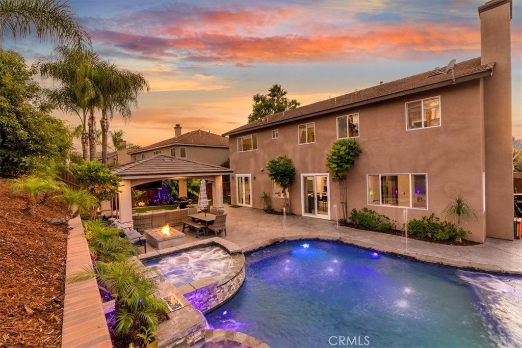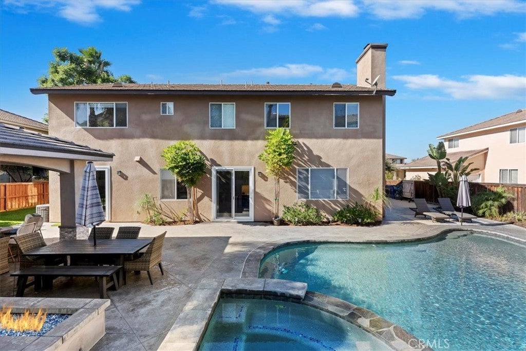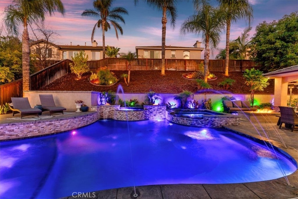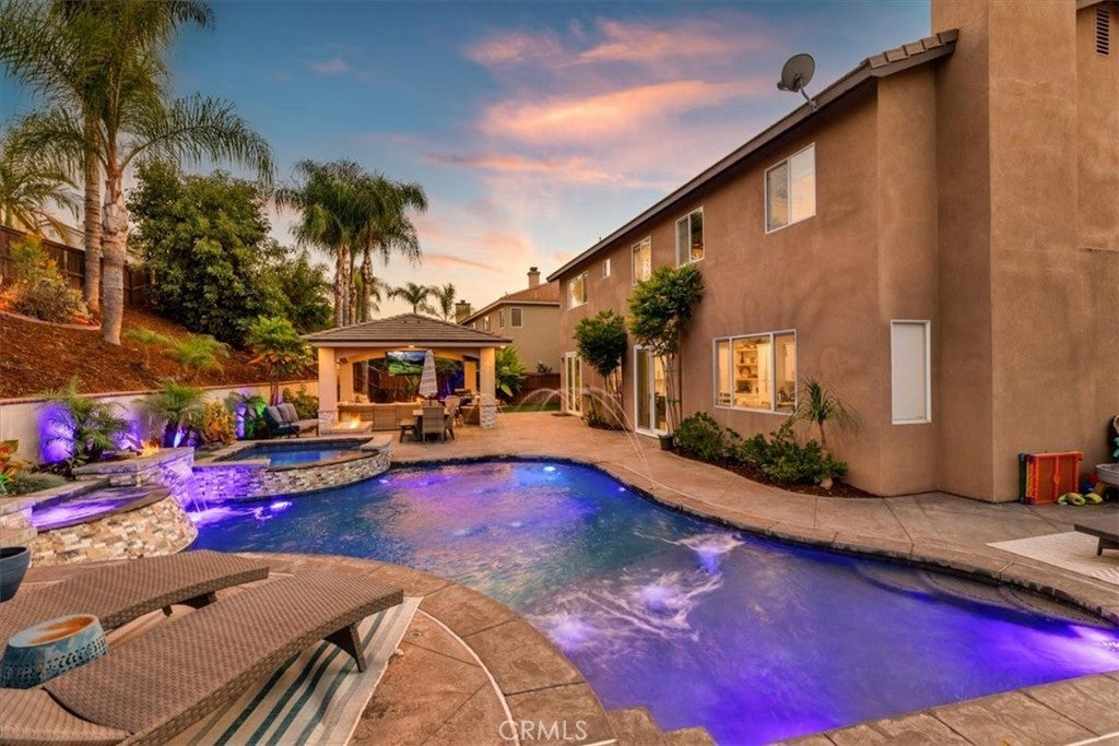 Upgraded Family Haven with Outdoor Entertaining at Its Best! A beautifully upgraded Orangecrest home where comfort, function, and resort style living come together. Situated on a 12,000 sq ft lot, this stunning residence offers 5 bedrooms and 3 full bathrooms, including a convenient downstairs bedroom and bath, perfect for guests or multi-generational living. Upstairs features three spacious guest bedrooms, an expansive primary suite with a private retreat that can easily be converted into a sixth bedroom, plus a media niche ideal for a home office or study area. Every detail has been updated with care, fresh interior and exterior paint, new waterproof laminate flooring, crown moulding, recessed lighting, remodeled kitchen and bathrooms, and newer carpet upstairs. The kitchen opens to a custom built bar and entertaining space with direct access to the show stopping backyard featuring a sparkling pool and spa with light and water features, and a detached covered patio with Mounted TVs. Over $200K invested in this incredible outdoor space alone! Enjoy a 3-car garage with epoxy floors and built in cabinets, plus a large gated side yard for extra parking or whatever you can imagine. Close to award winning schools, shopping, and freeway access. This home truly has it all!