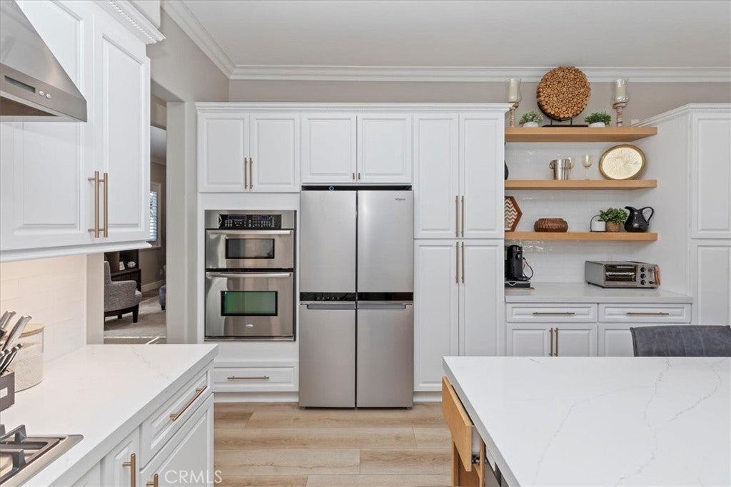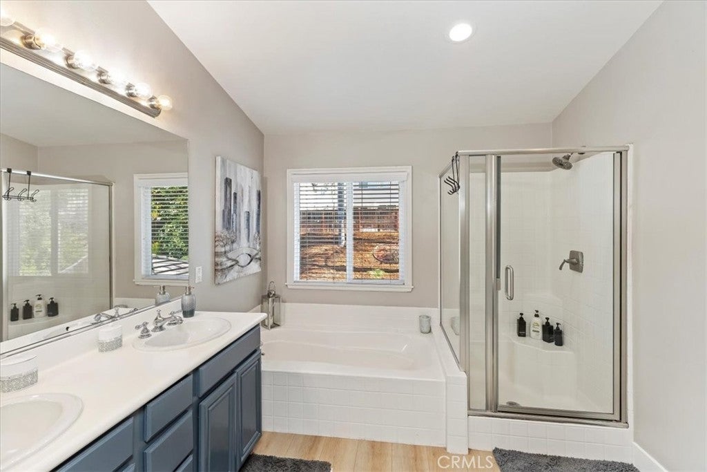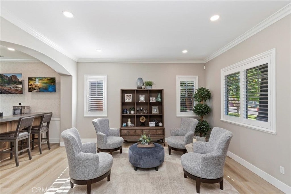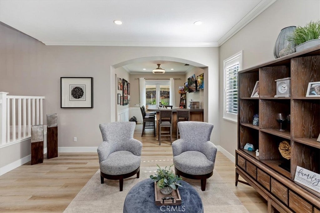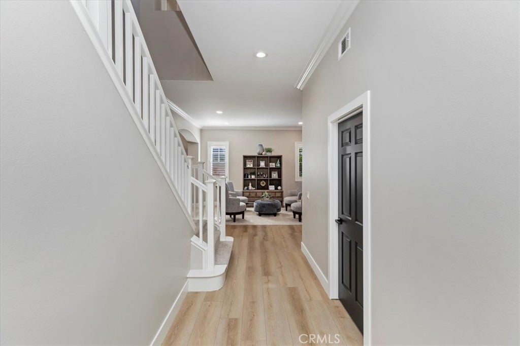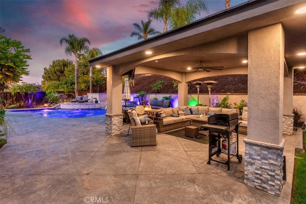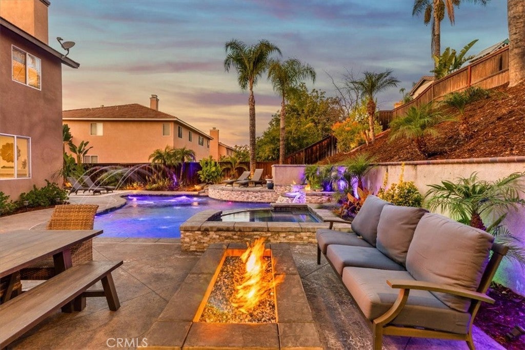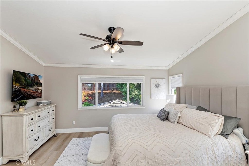 Upgraded Family Haven with Outdoor Entertaining at Its Best! A beautifully upgraded Orangecrest home where comfort, function, and resort style living come together. Situated on a 12,000 sq ft lot, this stunning residence offers 5 bedrooms and 3 full bathrooms, including a convenient downstairs bedroom and bath, perfect for guests or multi-generational living. Upstairs features three spacious guest bedrooms, an expansive primary suite with a private retreat that can easily be converted into a sixth bedroom, plus a media niche ideal for a home office or study area. Every detail has been updated with care, fresh interior and exterior paint, new waterproof laminate flooring, crown moulding, recessed lighting, remodeled kitchen and bathrooms, and newer carpet upstairs. The kitchen opens to a custom built bar and entertaining space with direct access to the show stopping backyard featuring a sparkling pool and spa with light and water features, and a detached covered patio with Mounted TVs. Over $200K invested in this incredible outdoor space alone! Enjoy a 3-car garage with epoxy floors and built in cabinets, plus a large gated side yard for extra parking or whatever you can imagine. Close to award winning schools, shopping, and freeway access. This home truly has it all!