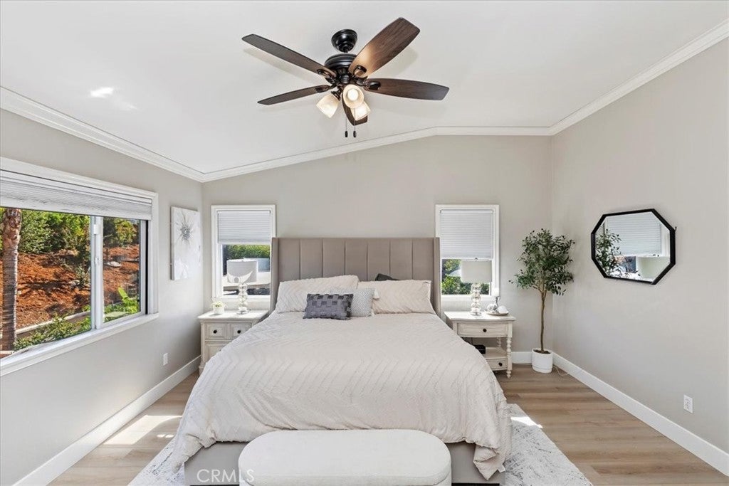 Ceiling Fan(s), Crown Molding, High Ceilings, Recessed Lighting, Bedroom on Main Level, Primary Suite, Walk-In Closet(s)