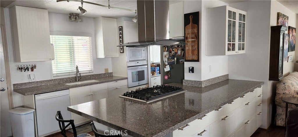Remodeled 1,440 sq. ft. 2-bedroom, 2-bath mobile home in Vista Village, a 55+ owner-occupied community in Vista, CA. This home features a spacious living room, dining area, kitchen with quartz countertops, and a pantry with ample storage. Updates include repaired sub-flooring with new luxury vinyl plank flooring. Appliances include a washer, dryer, dishwasher, 5-burner cooktop, wall oven and microwave. Additional features include a three-phase cartridge water filtration system, ceiling-mounted stainless and glass cooktop vent, and BathFitter low-step showers with seats in both bathrooms. The property includes a large shed and access to community amenities such as a clubhouse, pool, spa, exercise and billiards rooms, laundry, and a dog park. The monthly assessment of $355 covers water, trash, Cox cable TV, internet, and common area maintenance. Conveniently located near grocery stores, pharmacies, and restaurants, with an NCTD bus stop at the front gate. Residents own a 1/138th interest in the park; no rentals allowed.