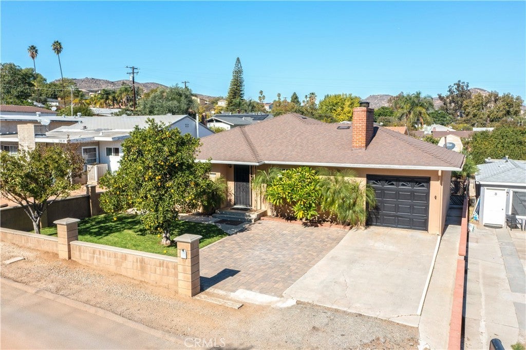 Welcome to a Riverside home that goes beyond expectations—upgraded, stylish, and filled with versatile spaces. The bright open floor plan offers easy flow, accentuated by laminate flooring, dual-pane windows, and a striking wood-burning stone fireplace with a matching stone hearth that anchors the living room. This space is further elevated by a beautifully detailed crown-edge tray ceiling, exclusive to the living room, adding architectural interest and a touch of sophistication. The dining room opens to the living room and is adjacent to the refreshed galley kitchen featuring granite counters, a modern single-basin sink, a new Mohen garbage disposal, stainless steel refrigerator and dishwasher, and an extended counter that doubles as extra eating space. All three bedrooms offer comfort with updated finishes and large closets, while the interior bathrooms shine with thoughtful improvements. The fully renovated primary bath showcases contemporary tilework, a glass-enclosed shower, and a sleek vanity. A massive attic provides exceptional bonus storage. The backyard is a genuine retreat with upgraded irrigation, fresh exterior paint, privacy enhancements, and lush landscaping including palms, plumeria, a naval orange, Santa Rosa plum and Eureka lemon fruit trees. From select vantage points, enjoy peaceful surrounding views that bring openness and calm. The drive-through attached garage includes upgraded electrical and a newer water heater. The impressive 24 ft x 24 ft permitted two-car garage/workshop/flex space is the property’s crown jewel—enhanced with upgraded electrical, structural improvements, water and gas lines, its own water heater, and a mini split system providing heating and cooling for comfortable climate control year-round. Inside, a fully finished wash room offers a tiled shower area, lighting, and ventilation. Nearby, a dedicated laundry area with a utility sink adds convenience without limiting the use of the space. A charming 8 ft x 12 ft barn-style Tuff Shed offers additional storage or hobby potential while enhancing the character of the yard. Set within Riverside’s vibrant university corridor, the home offers quick access to La Sierra University, CBU, UC Riverside, nearby shopping, freeways, and recreation—ideal for those who value convenience, community, and the energy of a university town. This is more than a home—it's a lifestyle upgrade with personality, flexibility, views, and undeniable wow factor woven into every detail.