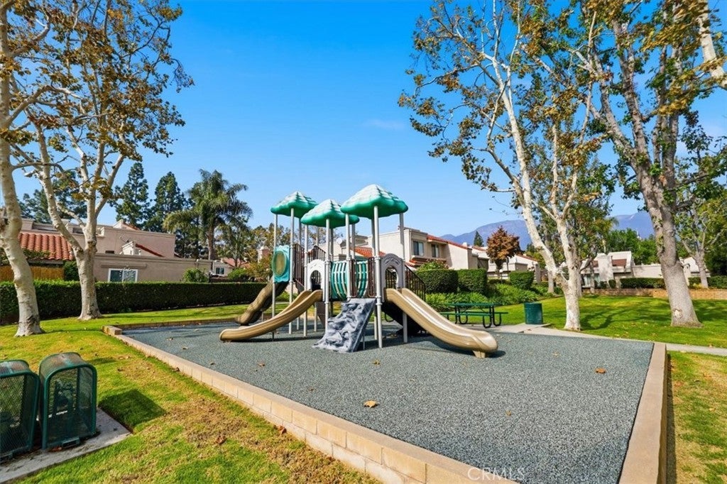 This charming ground-floor entry condominium in the prestigious "The Huntington Villas" community of Rancho Cucamonga offers convenient access through a private, fenced courtyard featuring low-maintenance turf, a storage closet, and a retractable automatic awning to enjoy either sunshine or shade. With 2 bedrooms and 2.5 bathrooms across 1,110 square feet, the home has been freshly painted and boasts a recently remodeled kitchen with new cabinets, appliances, quartz countertops, and bar top seating. The main level includes an open dining and living area with a gas-started fireplace, a half bathroom, and direct access to the single-car garage with laundry hookups. Plantation shutters throughout provide an elegant touch. The airy primary bedroom features high ceilings, two closets, and a double-sink vanity with a combo shower/tub and a separate toilet area. The second bedroom offers a walk-in closet and a hallway bathroom. This condo also includes an additional reserved parking space in front of the garage and is located just across from the tot park. The family-friendly community includes playgrounds, a pool and spa, lush landscaping, and ample guest parking, all within walking distance of shopping centers and the 210 freeway. Don’t miss out—see it, love it, and make it yours before it's gone!