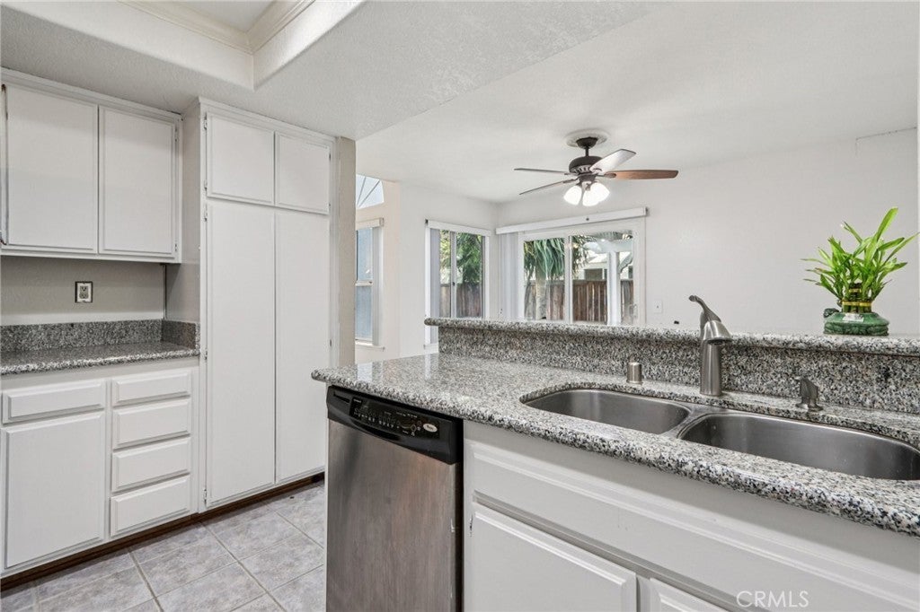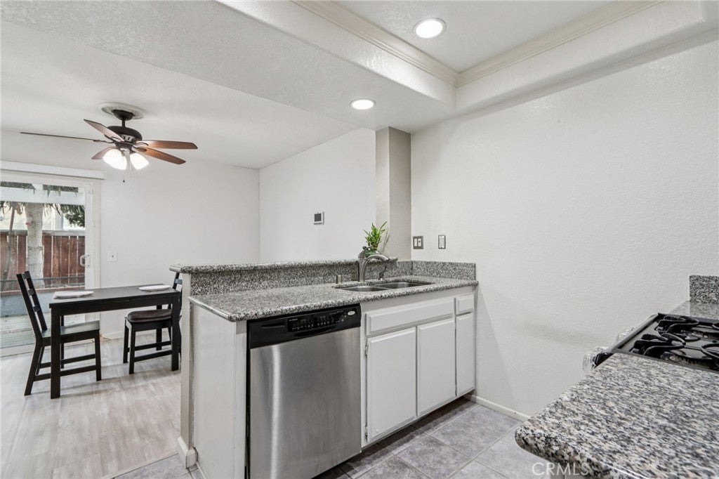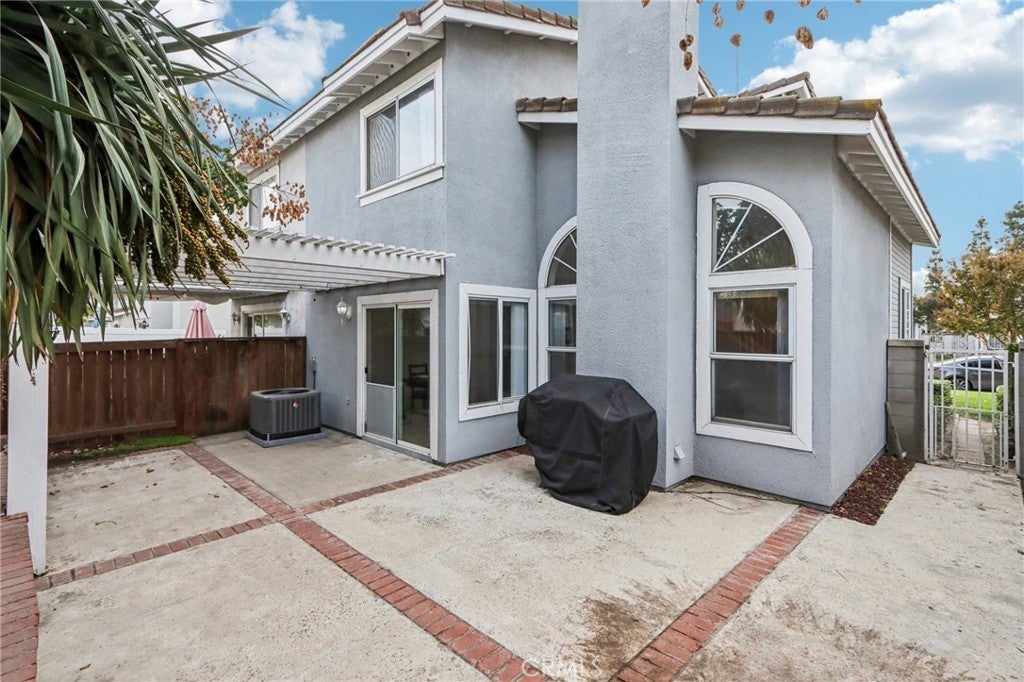 This beautifully maintained townhouse offers a bright and open interior with vaulted ceilings and laminate flooring throughout. The inviting living room features a cozy fireplace and flows seamlessly into the dining area with a slider opening to a spacious private patio—complete with a pergola, mature trees, and plenty of room for dining, lounging, and BBQs. The kitchen includes granite countertops, stainless steel appliances, and convenient access to the laundry room, powder room, and direct entry to the attached two-car garage. Recent upgrades include a new A/C (2025) with 10-year warranty, new heater (2024) with QuietCool system, and a new water heater (2023)—offering comfort and peace of mind for years to come. Upstairs, you’ll find two bedrooms each with its own en suite bathroom, including a primary suite with a walk-in closet. Located in the desirable Hampshire Villas community with low HOA fees, residents enjoy well-manicured grounds, a sparkling pool and spa, BBQ areas, and a basketball court. Conveniently close to markets, schools, shopping, dining, and major freeways—this home combines modern comfort, energy efficiency, and an ideal Southern California lifestyle.