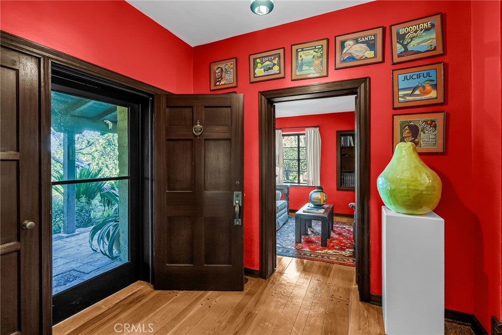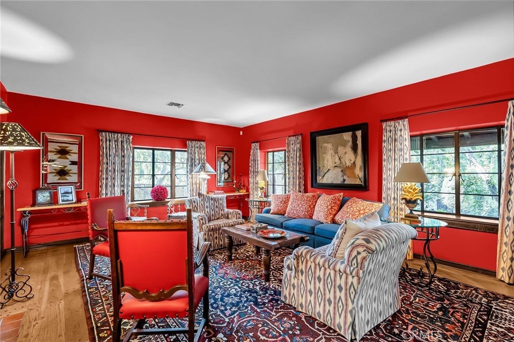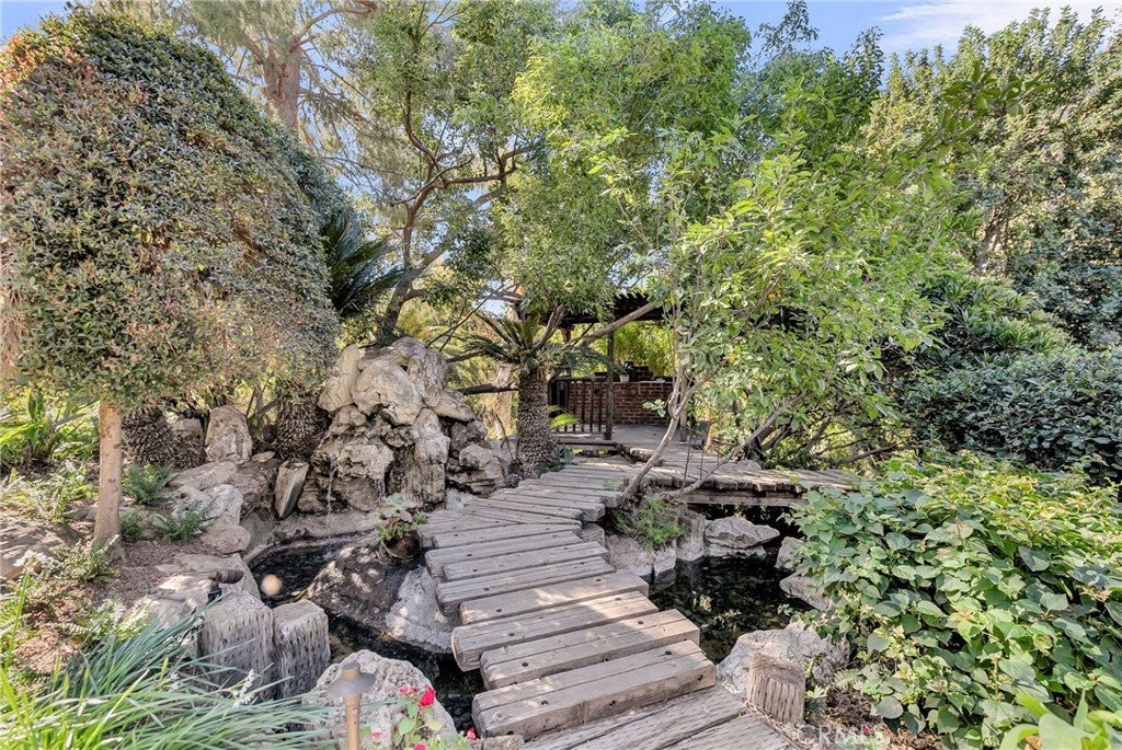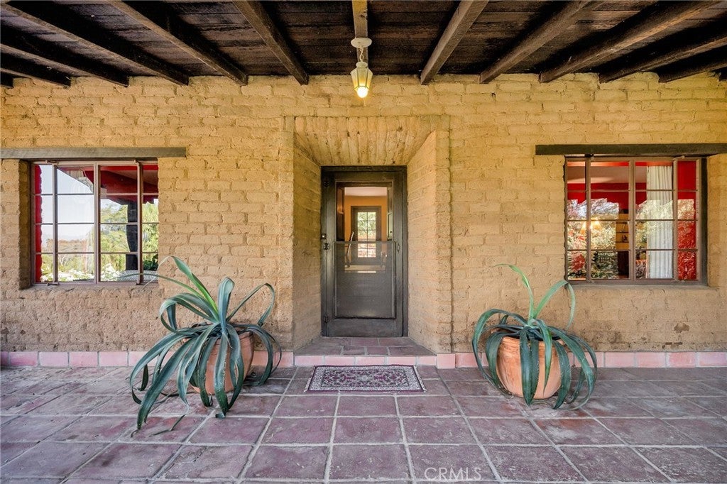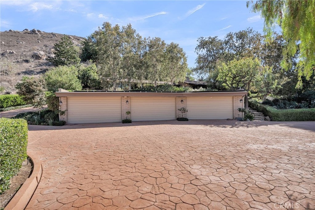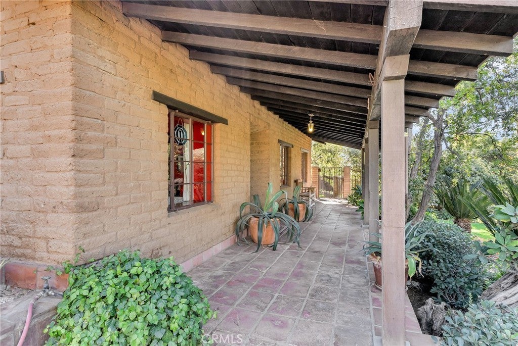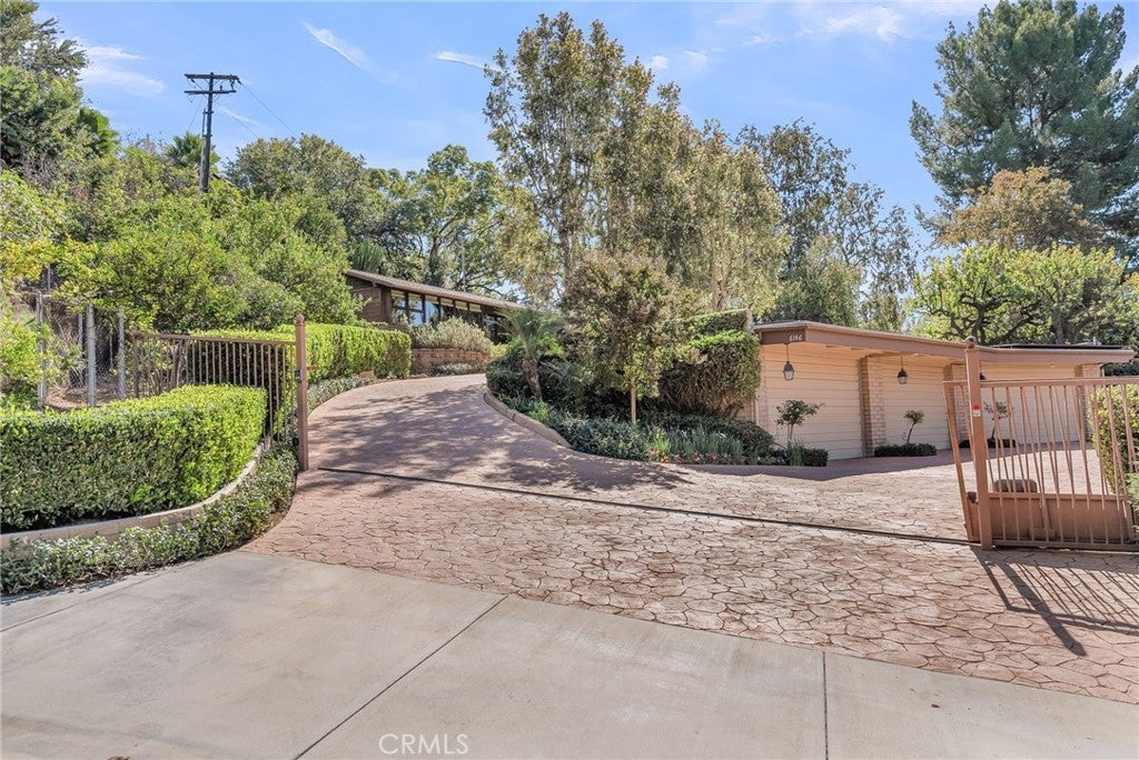 HAWARDEN HILLS- “Old” Hawarden Drive- An enduring piece of Riverside’s Citrus Heritage, the Stewart Malloch House built in 1937 of 12”-16” thick adobe block rests discretely on a bench of the hill surrounded by mature landscaping and Avocado Groves. Malloch, the grandson of William Irving and Great Nephew of Matthew Gage channeled the Architecture of early Riverside in designing this epic sprawling ranch style home. Embracing the efforts of the period’s Architect’s desire to create a regionally contemporary style, exceptional quality was built into this home with materials such as pegged oak hardwood floors, smooth plastered walls and ceilings, Steel divided light casement windows and Mahogany doors and trims molding throughout! Complete interior by renowned and published designer Carleton Varney adheres to the genuine theme of the home with a timeless refined western effect. Every space of this home is an experience, from the welcoming shelter of the massive front porch to the hospitality of the formal living and dining rooms and cozy study; to the spacious bedroom suites, all these spaces containing fireplaces for a total of 6 in the property! The grounds are a delight to the senses with the shade of mature trees over a century in age, manicured lawns, enchanting flower beds, peaceful Koi Pond with waterfall and gazebo, Built-in Bogner Spa off the primary suite and the odor of Citrus Blossoms throughout the year from the many varietals grown in the area. A massive six car garage measuring over 1,200 Square feet as well as the welcoming motor court just inside the privately gated driveway further compliment this truly special property. The property consists of 3 separate legal lots and is to be sold completely intact. The house and surrounding improvements sit on just over 3.1 acres with the adjoining 2 lots covered mostly in Avocado Varietals measure 1.08 and 2.38 acres for a total of 6.56 acres. Offered in pristine condition by the second owners for the first time in over 55 years!