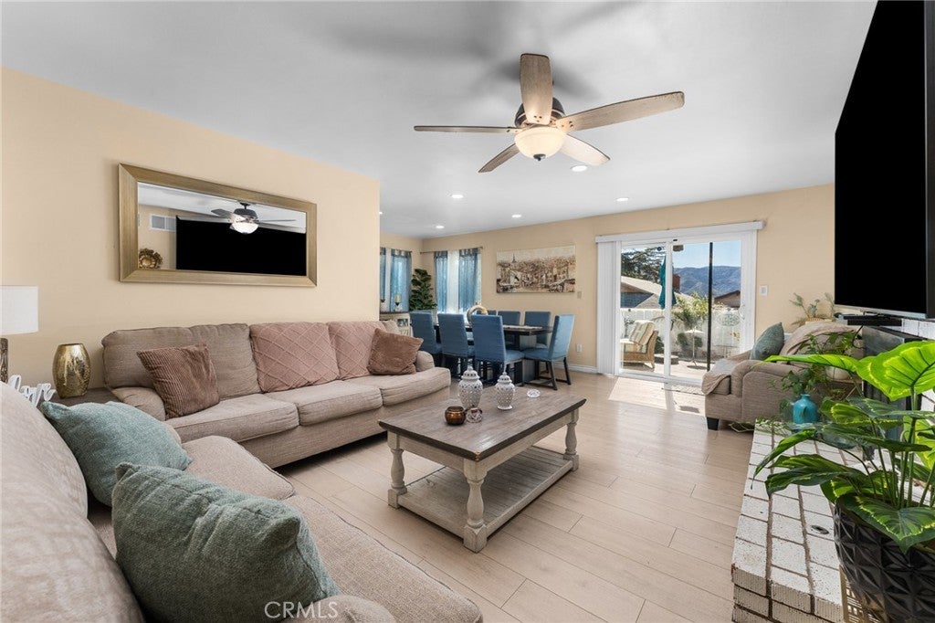 Welcome to this beautiful Pool home! Moving ready. Located in a desirable neighborhood of Banning!!! This 3 Bedroom, 2 Bathroom home includes a laundry room, Stainless steel appliances (excluding refrigerator), custom cabinets, Corian countertops, Laminated flooring throughout. Recessed lighting, and an open-concept layout that seamlessly connects the dinning, kitchen, and living areas. The home is equipped with double-pane windows throughout, a fireplace, and an A/C and Heating system approximately four years old. The laundry room is located next to the kitchen for your convenience and functionality. Relax and entertain in your private pool!! Perfect for gatherings with your family and friends! The home is just minutes from downtown Palm Springs, Desert Hills Premium Outlets, and Casino Morongo.