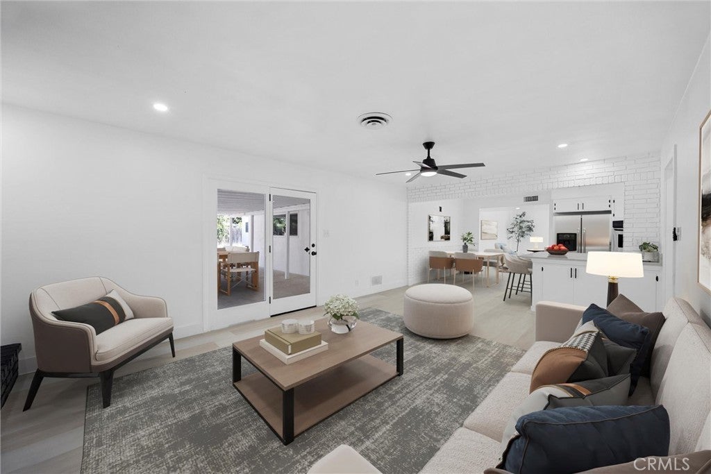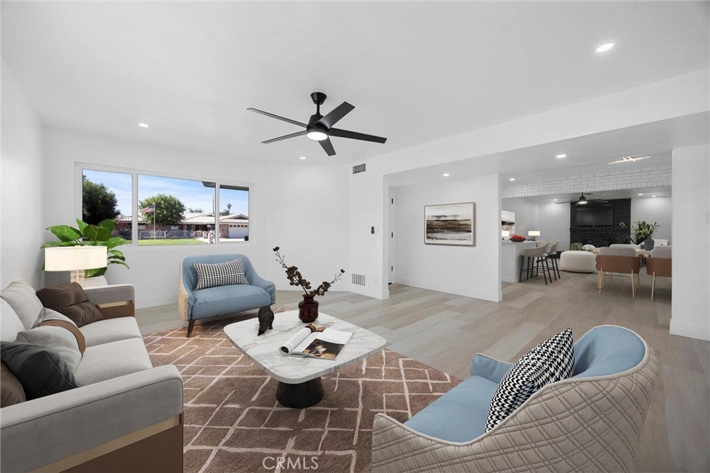 Step into this recently updated single-story home in Northwest Bakersfield. This three-bedroom, three-bath residence features 1,759 square feet of living space on a generous 12,196 square foot corner lot located on a quiet cul-de-sac in the Olive Estates area. The bright open layout includes new flooring, fresh interior paint, recessed lighting, and updated fixtures throughout. The family room highlights a cozy brick fireplace and glass doors that open to a covered patio, creating a seamless indoor-outdoor living experience. The remodeled kitchen showcases quartz countertops, white shaker cabinetry, stainless steel appliances, a tile backsplash, and breakfast counter seating. Bedrooms include new carpet and updated fixtures. The backyard provides ample space for relaxation and entertaining, with RV parking, a mobile shop, and a built-in barbecue area. Conveniently located near shopping, parks, schools, and major commuter routes, this move-in-ready home combines modern updates with comfort in a peaceful Northwest Bakersfield setting.