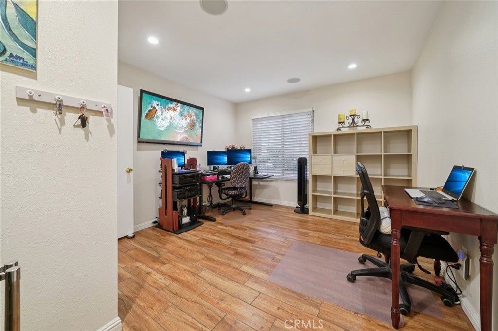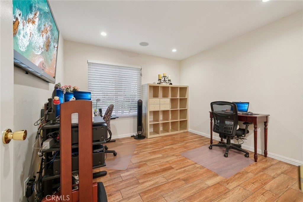 Welcome to 1777 Aspen Village Way, a beautifully maintained single-story home nestled in the secure, gated community of Aspen Village in West Covina. This turnkey 3-bedroom, 2-bath residence offers 1,216 sq ft of thoughtfully upgraded living space, blending comfort, style, and functionality. Step inside to discover modern tiled flooring throughout the main living areas, cozy carpeted bedrooms for added warmth and comfort, energy-efficient upgraded windows and patio doors that invite natural light and help reduce utility costs, stylishly updated bathrooms with contemporary finishes, a private master retreat featuring its own large patio door that opens to a secluded outdoor space—perfect for morning coffee or quiet reflection, a versatile third bedroom currently used as a home office with direct access to the spacious 2-car garage. Enjoy the benefits of being an end unit, with a large patio ideal for entertaining or relaxing outdoors. The community offers resort-style amenities including a gym, clubhouse for parties, pickleball and tennis court, billiards room—all designed to enhance your health and lifestyle. Conveniently located near the 10 Freeway, top-rated schools, and shopping centers, this home is a rare find in a sought-after neighborhood. Whether you're starting fresh or downsizing, 1777 Aspen Village Way is ready to welcome you home.