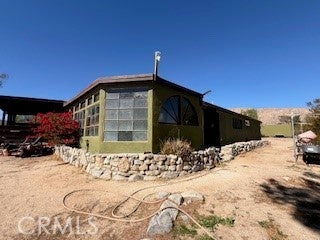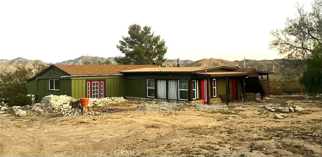 Beautifully upgraded single family home. Upgrades reflect excellent of new and vintage quality. Walking in to the home, you will be greeted with beautiful adobe floors and very spacious entry and living room area. As you turn around the corner you will see the dining area, also very spacious and inviting. Kitchen has been fully gutted with newly installed kitchen cabinets, stone countertops, and brand new stainless steel appliances. Notice that the ceilings have also been painted. Master bedroom is huge with a walk-in closet and bathroom. The 2nd bedroom is also spacious with 2 accessible closets. Laundry room. Utility room. The bonus room can be your family/game room - windows surround! Possibilities are endless here - bonus and utility rooms can be converted to a 3rd, 4th, or 5th bedroom? And you still have another bonus area for your bbq. Love to cook? This kitchen has enough space for everyone to cook together. The large metal pod used to be a refrigerated container so it is insulated and can be used as your "toy" storage or an apartment? New split system keeps your home cool. This home is nice and bright. Lot size is close to 5 acres. No parking problem here. Have your guests bring their own trailers - enough room to park and spend the weekend and holidays. Use your imagination! You can store your toys or grab your quad and drive around the property as many times as you want. Beautiful sunsets! Wide open skies. May be furnished. Come home now! Close to HWY 62, and very accessible. But also very private. Commuter friendly. Minutes to Palm Springs. Buyer and buyer's agent to do their own inspections, investigations, and due diligence. Information contained herein is not guaranteed, warrantied, nor implied.