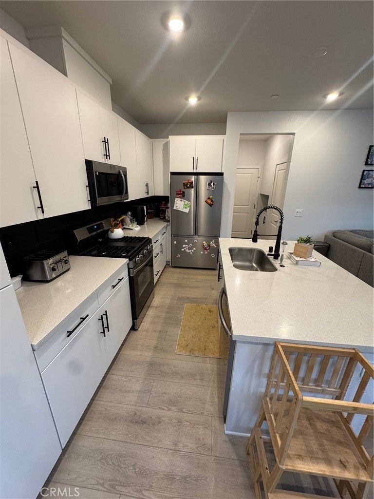 This beautiful 4-bedroom home on Sparrow Court was just built in 2024 and comes with a long list of unique upgrades and features unavailable with other lots. It is located near the end of a short private driveway, so passing traffic is minimal, and there is ample room nearby for guest parking. There are no homes positioned directly behind this home and there is also a wider distance from the homes facing it, creating an increased sense of space and privacy. A $25,000 lot premium was paid for the larger backyard, which was just completed with concrete and artificial grass at a cost of over $10,000. It has a uniquely high rear wall to help with noise reduction and comes with string lights that automatically activate after dusk. The interior has also gone through over $36,000 in upgrades. The inside walls have been repainted from flat to semi-gloss paint throughout. There are two custom, wood focal walls in the home, one of which is located in the entryway and extends to the top of the vaulted ceiling. There are two stunning, matching tiled walls in the downstairs powder room and the upstairs hallway. Striped tiles were installed on the stair risers to give the staircases a gorgeous, timeless look. Additional upgrades include extended kitchen cabinets, window treatments throughout, new water-resistant laminate flooring throughout, and large modern tile in all bathrooms and laundry room. Black finishes were also added with new cabinet hardware, subway backsplash tiles, a new kitchen faucet, ceiling fans in all rooms, and on the staircase banister/ handrail. Located in a gated community, this newer neighborhood comes with many amenities, including a modern clubhouse (available to rent), pickleball courts, a pool/ spa/ toddler pool, BBQ and picnic areas, a playground, and dog parks. The HOA also maintains the home's front yard landscape. You will not find this combination of lot position, lot size, and home upgrades anywhere else in this community, so be sure to book your showing appointment before this turn-key home is gone!
