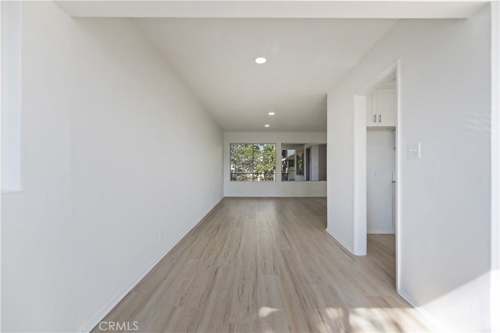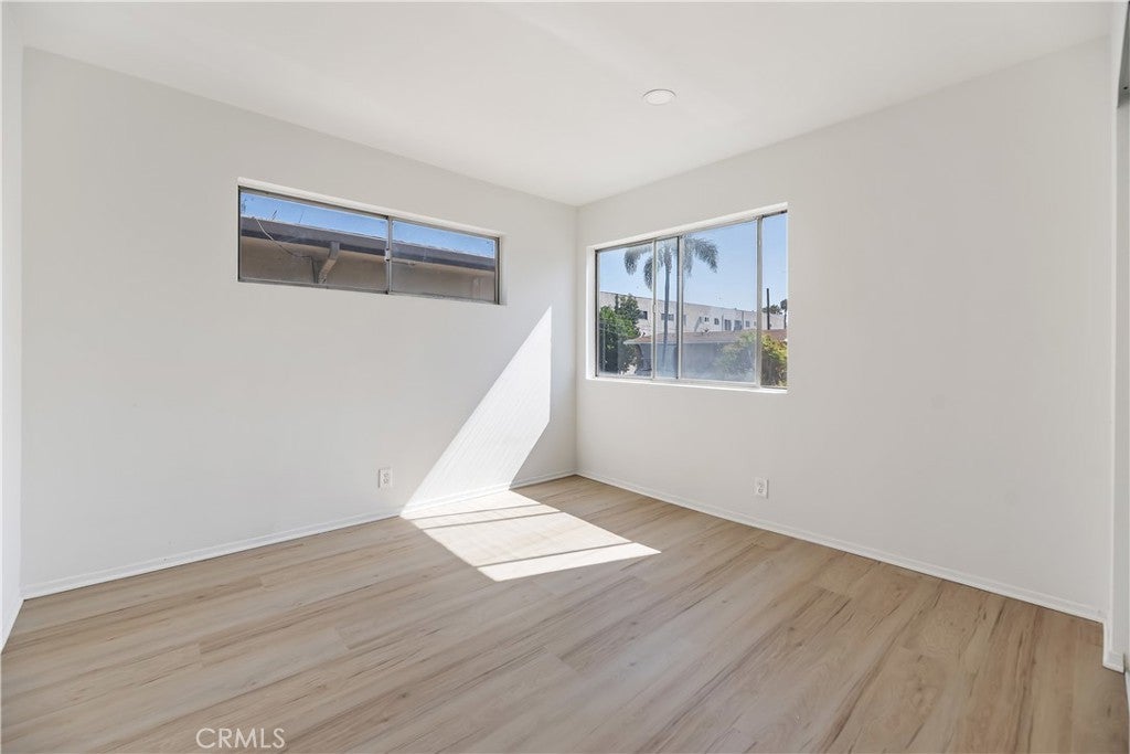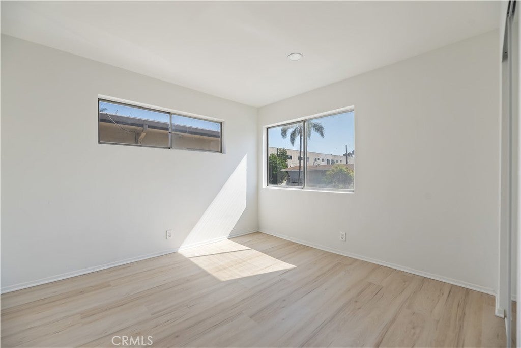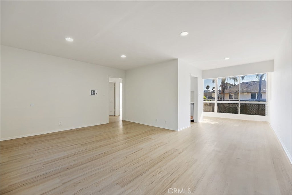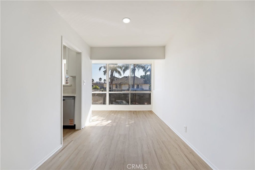 This stylish Long Beach condo offers a private courtyard entry and a bright, welcoming interior. A large wall of glass picture windows fills the living room with natural light, complemented by flush-mount lighting and light-colored luxury plank flooring throughout. An additional panel of windows in the dining area provides views of the neighborhood’s palm trees, while a kitchen serving window makes entertaining easy. The remodeled kitchen features crisp white cabinetry, sleek black and stainless steel appliances, a stainless steel double sink with a high-arc faucet, and quartz counters. The spacious primary suite offers two full-length mirrored wardrobe closets and direct access to its beautifully updated ensuite bathroom with glass-door walk-in shower and tastefully tiled surround, new fixtures, and quartz-topped vanity. A secondary bedroom also includes mirrored wardrobe doors, providing abundant storage. The remodeled hall bathroom includes a new tub/shower enclosure with glass shower doors, quartz counters, new floors, and modern fixtures. Raised panel doors and thoughtful finishes enhance the home’s fresh appeal. With its stylish updates, natural light, and functional design, this condo combines comfort with a desirable location. With a remarkable walkability score of 94 you are sure to enjoy the local shops, boutiques, and restaurants, and it's very bikeable too with a score of 86. Enjoy nearby attractions like the waterfront and the brand-new Modern Civic Center. With endless activities and strong rental potential. Commuter-friendly with the convenient Metro Blue Line and easy freeway access. All this for an affordable price. See it today!