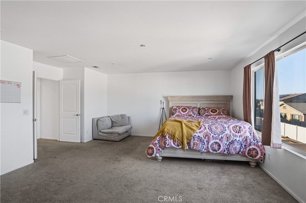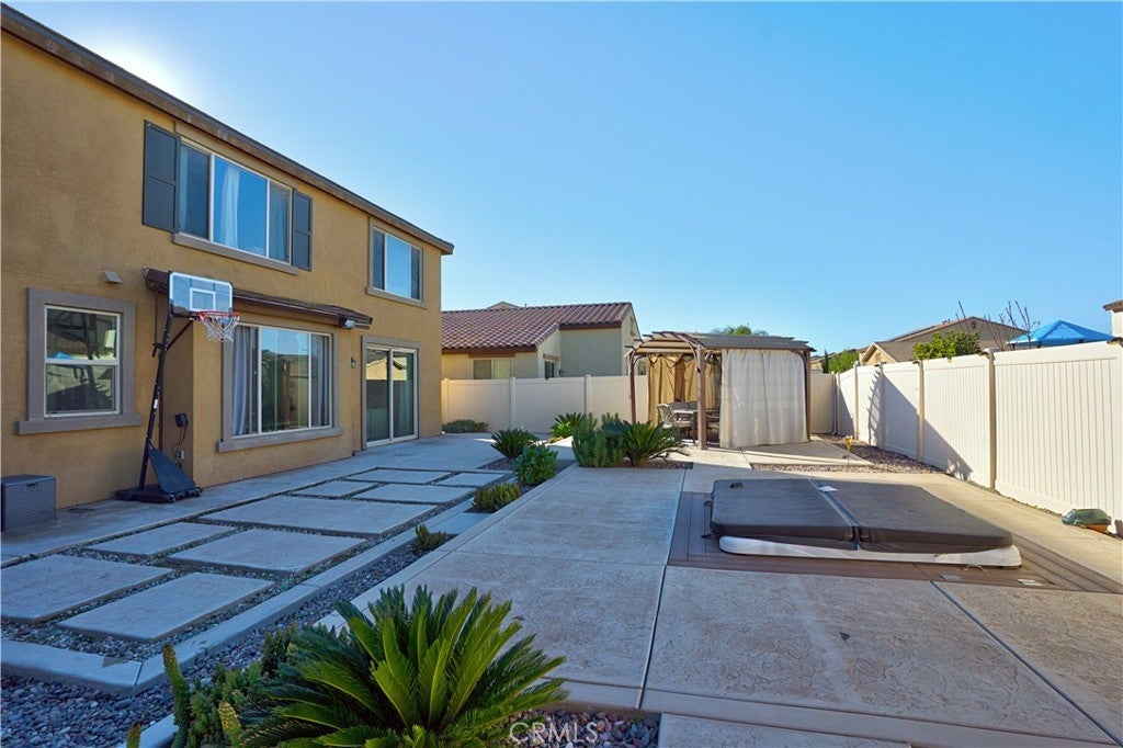 Curb appeal shines as you arrive to a newly renovated front yard featuring astroturf, palm trees, and a charming front porch with a cozy seating area. This stunning Pulte contemporary home in the Avelina community offers 5 bedrooms, 3 full baths, and 1 three-quarter bath across 3,286 sq ft of living space, and is situated on a 6543 SF lot. A main-level bedroom and full tub/shower bath sit privately to the right of the entry. Step into the formal foyer, where tall, dramatic ceilings and abundant windows fill the space with natural light. The formal living room welcomes you with crisp contemporary tones and stainless-steel lighting. Continue down the hallway to the expansive great room, showcasing a granite-island kitchen equipped with a refrigerator, dishwasher, oven with gas cooktop, microwave, and dual stainless-steel sink. Storage is abundant with extensive cabinetry and two walk-in pantries, including a convenient desk nook before the second pantry. The great room is lined with windows and a glass slider overlooking the thoughtfully designed backyard, complete with concrete patio pads, a gazebo, astroturf, succulents, and a dedicated pad with a jacuzzi. Upstairs, a spacious loft greets you at the top of the carpeted staircase. Four bedrooms are located on this level, including a generous primary suite with dual sinks, walk-in shower, large walk-in closet, and private toilet room. Two secondary bedrooms share a Jack-and-Jill bathroom, each with its own walk-in closet. A fourth upstairs bedroom and an additional full bath complete the second level, bringing the total to four bedrooms and three bathrooms upstairs. The home also features a desirable three-car pull-through garage. The rear portion of the pull-through has been cleverly plumbed to create a potential SIXTH bedroom and bathroom ADU setup. The back, pull-through garage area is presently transformed into a cozy couch retreat featuring a big-screen TV, while the front area of the garage still allows 2 cars to be parked with storage areas. The Tesla solar system is 27 panels on a lease, and a huge savings on the electric bill! The possibilities are endless with this home. Located in the sought-after Avelina community, this home offers exceptional style, space, and value—with very low HOA fees.