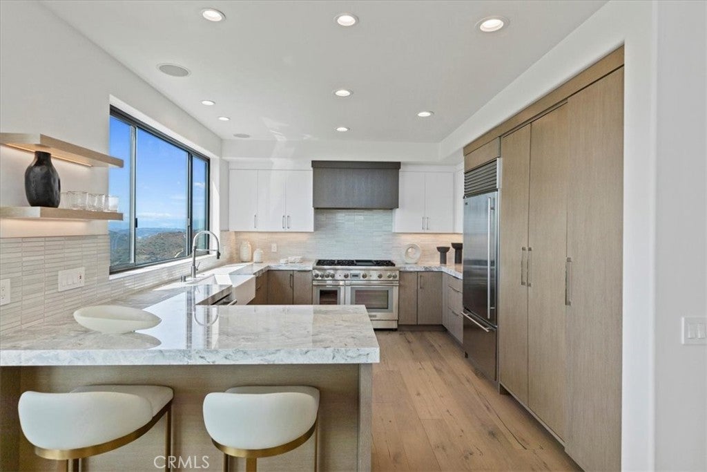 Ultra-Luxury Feature List Property Overview-- Iconic Skyline Drive address with commanding ocean, canyon & Catalina Island vistas Fully reimagined luxury residence – completed 2023 4 Bedrooms | 4 Bathrooms of refined coastal living Nearly every room designed to showcase panoramic view corridors NEW premium Heating & Air system (2024) Architectural & Interior Luxury-- Frameless picture windows capturing endless ocean horizons Provenza Old World hardwood floors for an elevated, timeless aesthetic Onyx Glass windows offering privacy, clarity & elegance Sonos whole-home audio for seamless, high-end sound throughout Multiple view terraces & balconies ideal for sunset gatherings Chef’s Designer Kitchen-- Imported Bardiglio Versilis marble countertops – striking & sophisticated Custom stained rift-oak cabinetry with luxury hardware Dramatic Sessemo Raku handcrafted tile backsplash 24" Thermador gas range w/ double convection ovens Thermador dishwasher & Sharp microwave drawer Custom beverage center in dining area – perfect for entertaining in style Main-Level Primary Retreat-- Two generously sized walk-in closets with luxury finishes Spa-inspired Terrazzo-tiled shower with dual multifunction shower heads Expansive windows framing breathtaking ocean & canyon views Steps from the elegant powder room and view-filled main living area Lower-Level Private Quarters-- Three spacious, light-filled bedrooms with designer surfaces Junior suite with private ocean-view balcony & frameless picture window Ensuite bath wrapped in floor-to-ceiling tile with floating vanity Engineering & Structural Excellence-- Built on a rare 12,760± sq. ft. elevated hillside lot Deep steel-reinforced foundation anchored into bedrock Engineered for stability, longevity & earthquake resilience Premium materials throughout — crafted for peace of mind and enduring value Premier Laguna Beach Lifestyle-- Minutes from world-famous beaches, village boutiques & upscale dining Close to renowned art galleries, festivals & coastal events Enjoy Laguna’s best surfing, swimming, hiking & biking Under 5 miles to Anneliese Schools