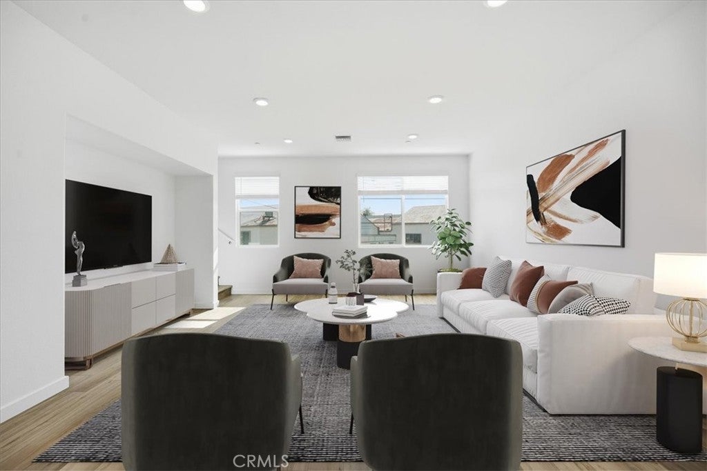 NEW CONSTRUCTION MOVE-IN FOR THE HOLIDAYS. This beautiful townhome is located in the gated community of Azul! This modern 3-story residence features wide vinyl plank flooring throughout and a welcoming first-floor den with a convenient coat closet—perfect for a home office or lounge space. The second level showcases an open-concept layout filled with natural light. Enjoy a spacious great room ideal for family gatherings and entertaining, along with a contemporary kitchen featuring a center island with bar seating. A powder room and side-by-side laundry closet add everyday convenience. Upstairs, the third floor offers two well-appointed secondary bedrooms, a full guest bathroom, and the primary suite. The private primary suite feels like a personal retreat with spa-inspired touches. Experience modern living with easy commuter access and close proximity to shopping, dining, and local favorites. Don’t miss this opportunity to own in this desirable gated community! PROFESSIONAL PICTURES are model match only and virtually staged. Actual finishes such as backsplash, countertops, shower surrounds may vary. Specific finishes for this home available upon request.