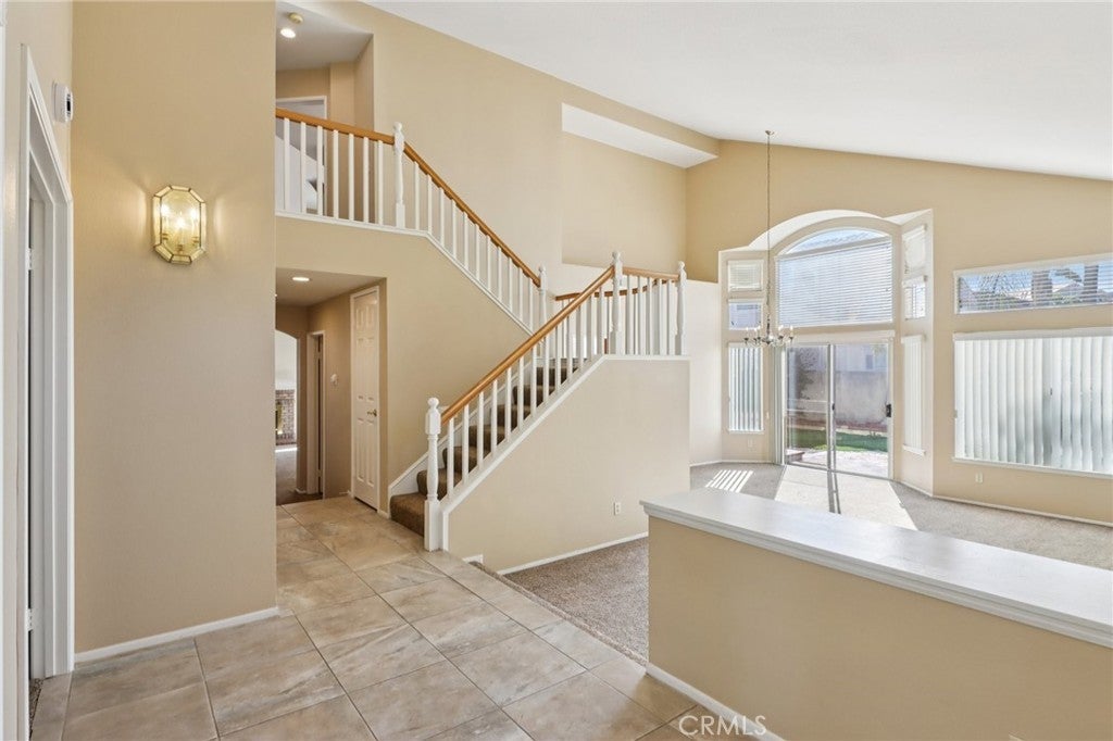 Stunning Southern California curb appeal, this immaculately clean home sets on a stately raised corner lot framed by mature trees with soaring vaulted ceilings and filled with abundant natural light throughout. The welcoming foyer opens to formal living and dining spaces, highlighted by large windows that brighten every corner. A convenient main-level bedroom with its own en suite bathroom sits just off the entry, perfect for guests or multigenerational living. The dining room’s sliding door leads to the backyard patio, creating an easy indoor–outdoor flow. At the heart of the home, the spacious kitchen offers a center island, ample cabinetry, a breakfast nook, and a sink with a peaceful view of the backyard. The adjacent family room features a charming brick-framed fireplace and glass sliders opening to the expansive outdoor space. The well-kept backyard includes two patios (one covered), artificial turf, mature palms, and a planter border, ideal for relaxing, entertaining, or enjoying warm SoCal evenings. Additional conveniences include a laundry room and direct-access 3-car garage. Upstairs, you’ll find three bedrooms and two bathrooms, including an oversized primary suite with a retreat area, fireplace, private balcony, wet bar, soaking tub, double-sink vanity, separate shower, and a massive walk-in closet. The secondary bedrooms are generously sized and connected by a Jack-and-Jill bathroom with dual sinks; one bedroom opens to a charming front balcony through a French door. Located near shopping centers with easy access to the 60 and 215 freeways, this beautifully maintained home offers exceptional space, comfort, and curb appeal in a convenient location.