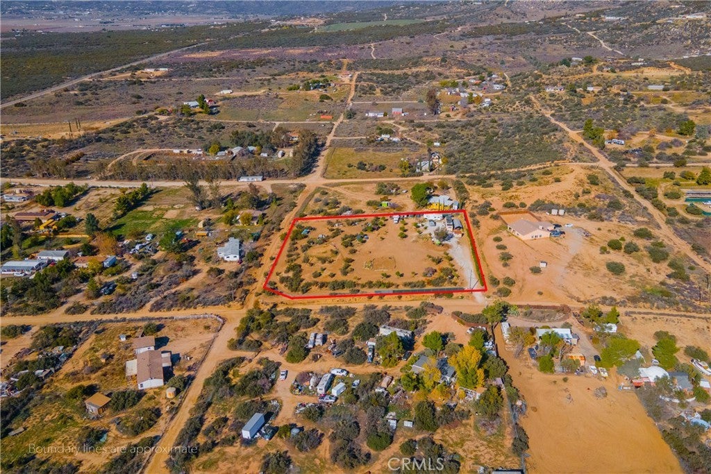 2.7 Acres fully fenced. Bring the horses and the family to enjoy this almost flat parcel in Anza. There are fruit trees including cherry, pear, apple all on drip system as well as many pepper trees for beauty and shade. Existing now is a single wide mobile with 2 additional sheds as well. The parcel has septic system and well and pump in place. This is a great opportunity to bring in a new mobile home or build your own dream home. Enjoy the starry nights and mountain climate.