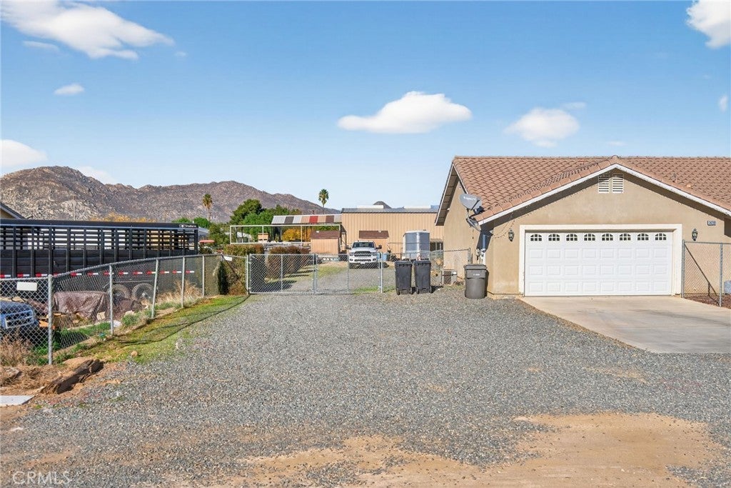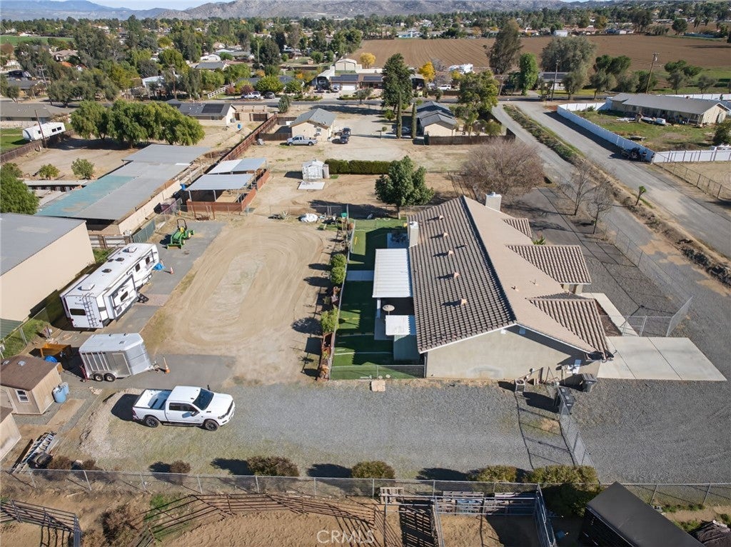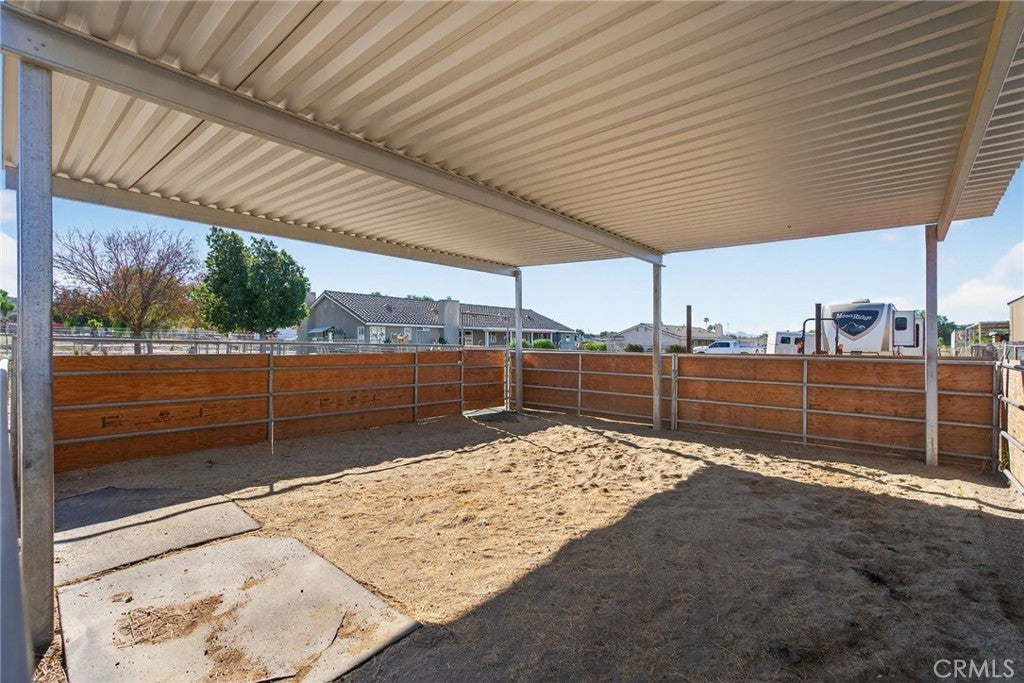 Nuevo Ranch. Welcome home to your New Ranch. Upon arrival the serene feeling this community offers will have you excited to enter this beautiful home. Completely gated for privacy this almost 1 acre Ranch checks off all the boxes. Entry into the formal living room with vaulted ceilings sets the expectations this home will provide, upgraded flooring, shutters and many more upgrades. The dining room is adjacent to the kitchen and provides the perfect setting for hosting large and small events. The kitchen has stainless steel appliances, granite counter tops and an abundance of cabinetry. The family room is open to the kitchen with a breakfast bar area. The 1st primary suite is located on one side of the home offering privacy from the rest of the home, complete with its own bathroom, walk-in closet, tall ceilings and a door to access your rear yard. The 2nd primary bedroom features a fireplace, private entry to the side yard, vaulted ceilings and an abundance of natural lighting. The private bathroom to this suite has been recently remodeled with a dual sink vanity, separate soaking tub and shower and a large walk-in closet. The 2 additional bedrooms are larger than average and share the 3rd full bathroom. Enjoy the serene location under your covered patio. The large lot has Horse stalls and room for additional pens, round exercise pen and more. Large side access to pull your trailers around to the rear of the property. Do you want to build that large shop or garage? There is plenty of space for expansion. This ranch is conveniently located, a short drive South to Temecula or head the other direction into Riverside and beyond.